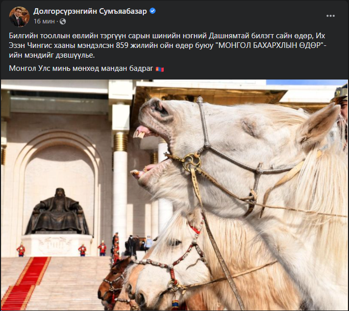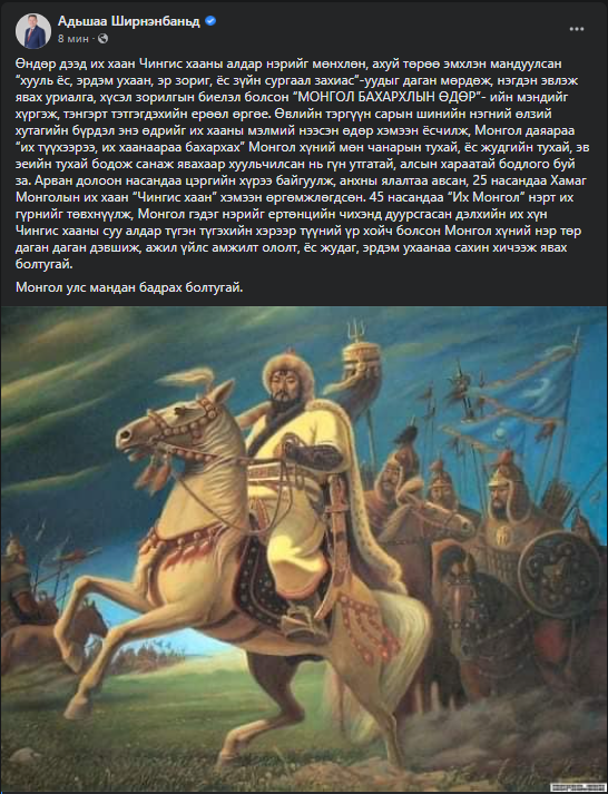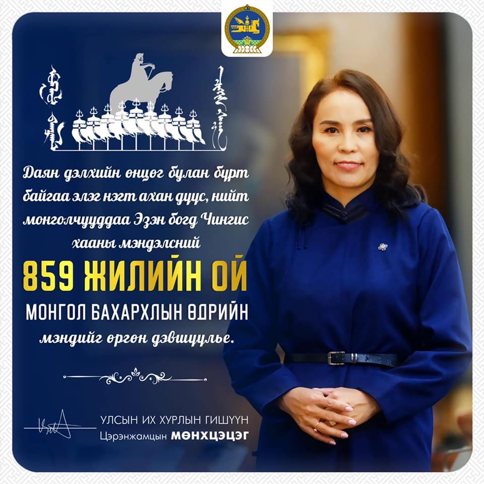 Их эзэн Чингис хааны мэндэлсний 859 жилийн ой, “Монгол бахархлын өдөр”-ийг тохиолдуулан УИХ-ын гишүүд ямар мэндчилгээ дэвшүүлснийг түүвэрлэн хүргэж байна.
