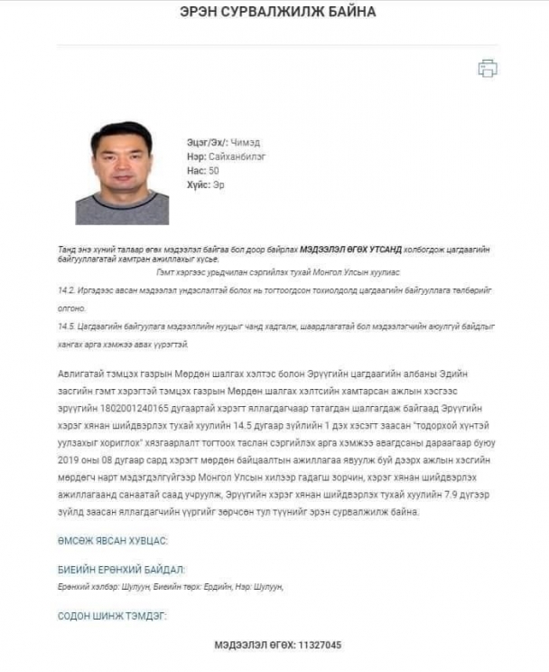 | "Ерөнхий сайд асан Ч.Сайханбилэгийг байгаа улсаас нь шилжүүлэн авч ирнэ” |