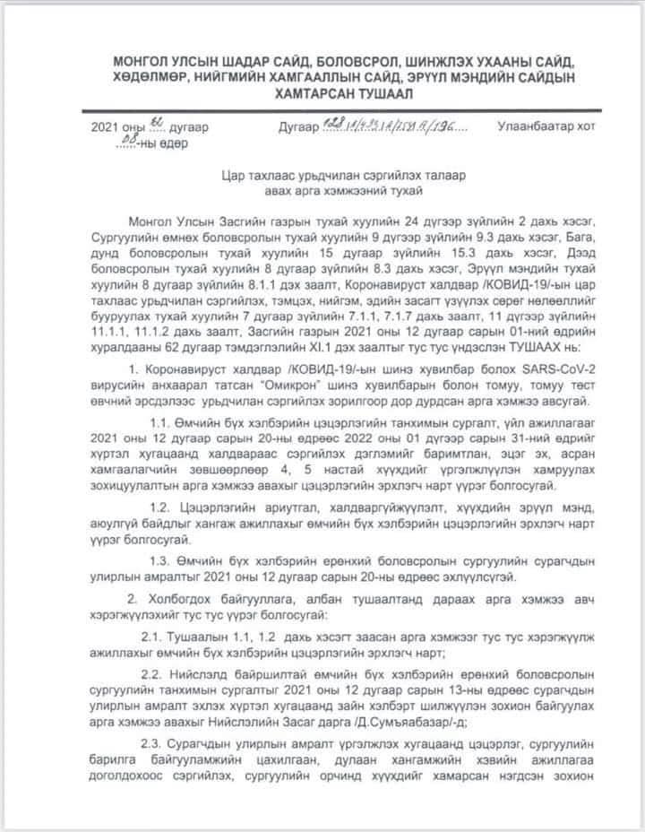 | Бүх шатны боловсролын байгууллагын багш, сурагчид шинэ жил ТЭМДЭГЛЭХГҮЙ |