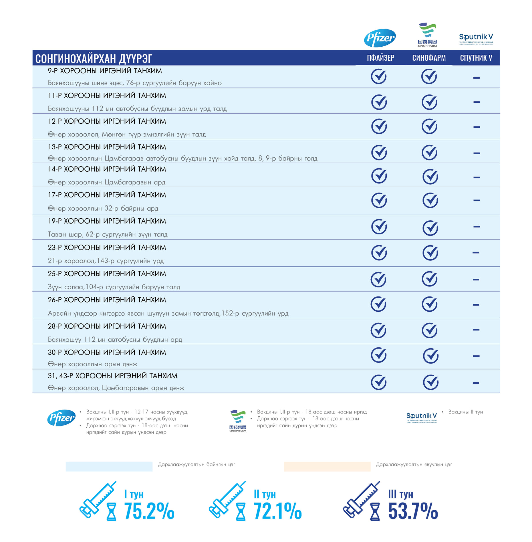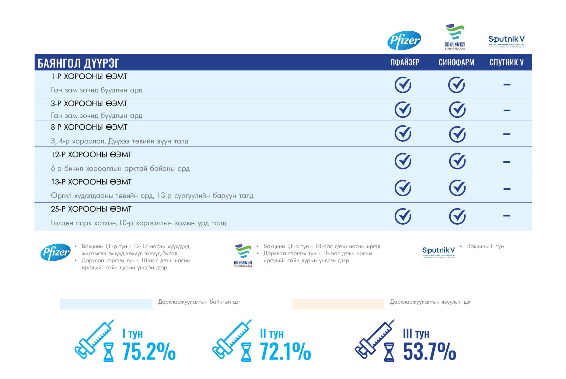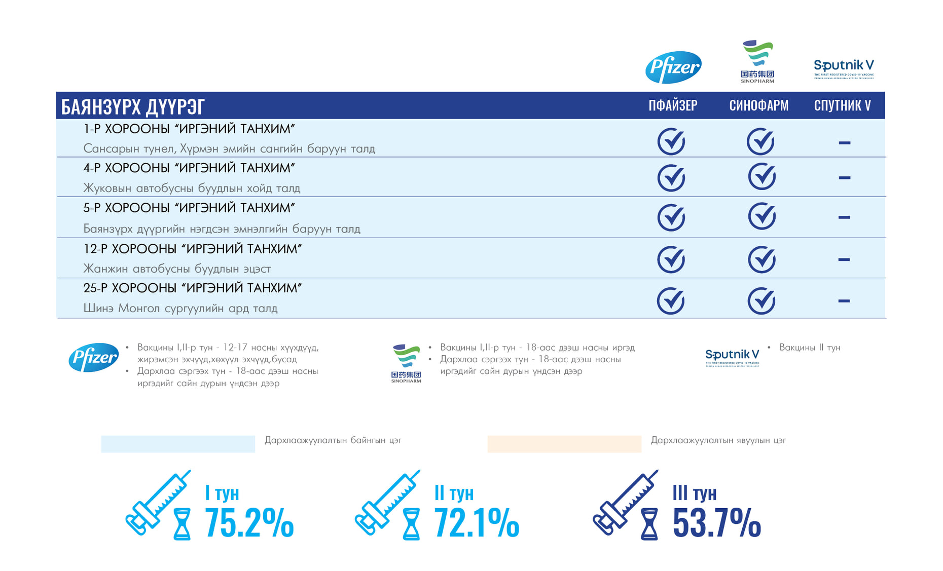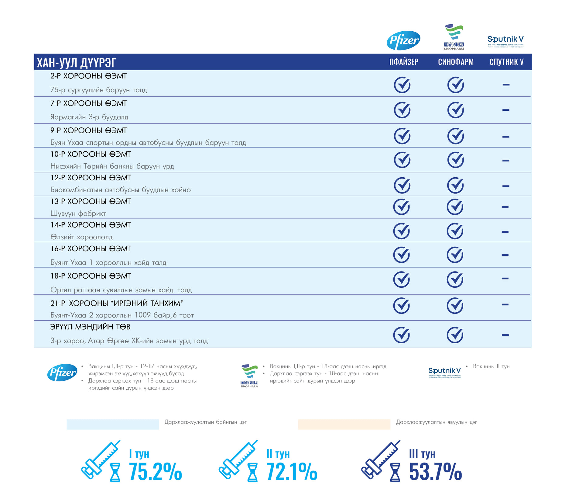 | ТАНИЛЦ: Өнөөдөр ажиллах дархлаажуулалтын цэгүүд |