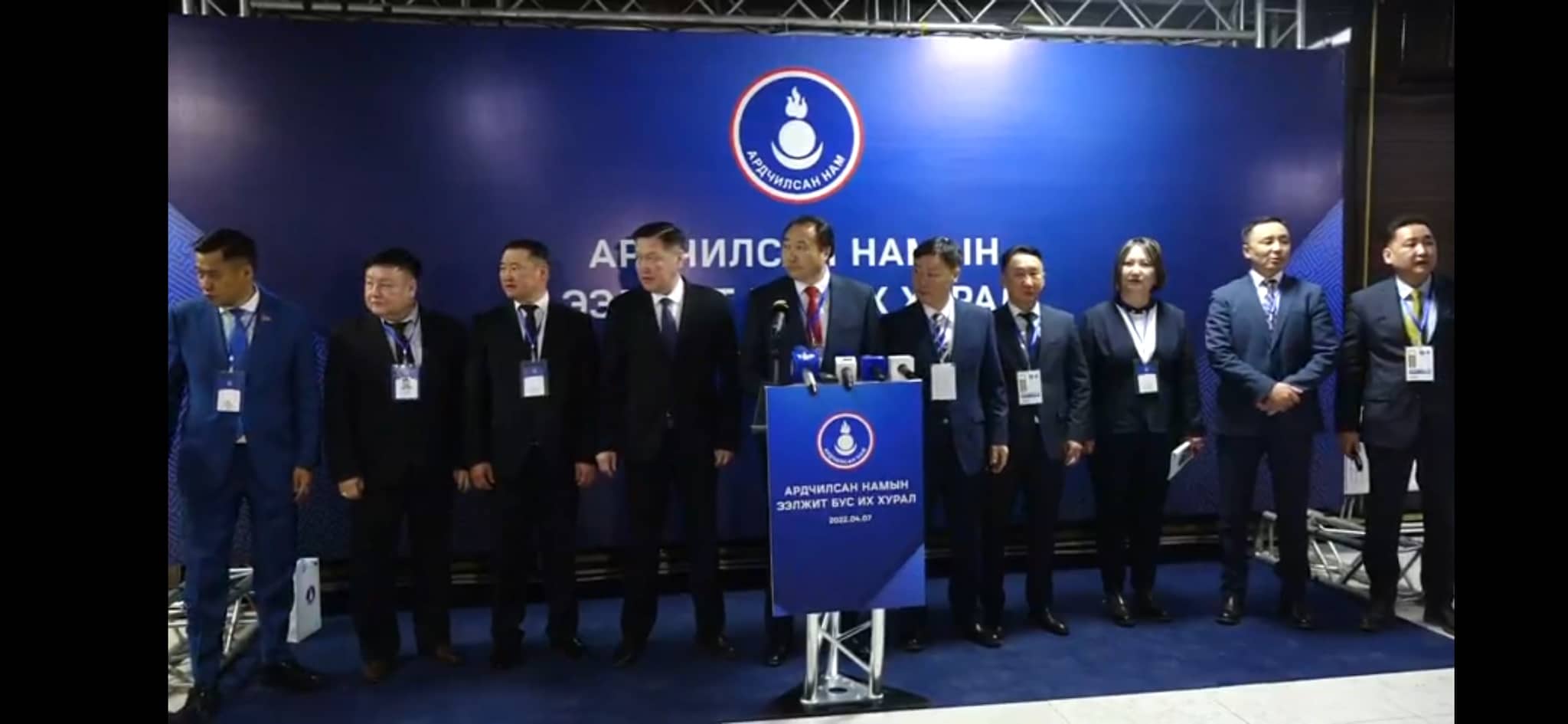 Улс төрийн зөвлөл "Ардчилсан намын улс төрийн зөвлөлийн тогтоол 2022 оны дөрөвдүгээр сарын 6-ны өдөр дугаар 0401. Мэдэгдэл, Улсын дээд шүүхийн нийт шүүгчдийн 2021 оны арванхоёрдугаар сарын 20-ны өдрийн 38 тоот тогтоолыг хэрэгжүүлэх зорилгоор Ардчилан намын даргыг сонгох сонгууль орон даяар зохион байгуулж, санал хураалтад оролцсон 120 мянга гаруй гишүүдийн 96 хувийн саналаар сонгогдсон намын дарга 2022 оны дөрөвдүгээр сарын 7-ны өдөр Их хурлаараа ёсчлон батламжлах гэж байна. Өнгөрсөн хоёр жилийн хугацаанд Ардчилсан намын даргын сонгууль Их хурлыг таслан зогсоохыг оролдсон үйлдэл,эс үйлдэл үргэлжилж байгааг намын улс төрийн зөвлөлөөс эрс эсэргүүцэж монгол орныхоо өнцөг булан бүрээс сэтгэл тавин ажиглаж байгаа мянга, мянган гишүүн, дэмжигчид тэднийг төлөөлөн Ардчилсан намын их хуралд хүрэлцэн ирсэн төлөөлөгчдийнхөө бүрэн эрхийг хамгаална гэдгээ үүгээр мэдэгдэж байна.