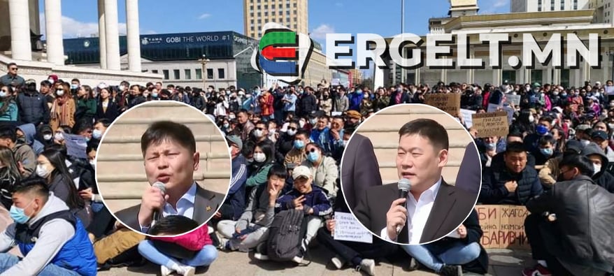 Сүхбаатарын талбайд жагсаж байгаа залуусын өмнө Ерөнхий сайд, Хууль зүй дотоод хэргийн сайд хоёр нь ээлж ээлжээрээ гарч ирж, уучлалт гуйгаад их л айсан шинжтэй.