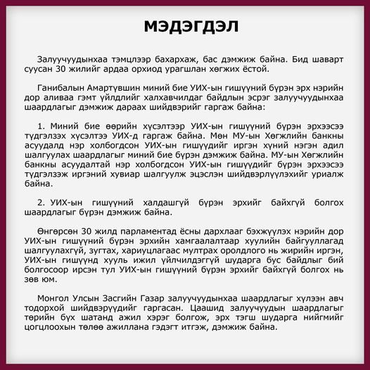 Б.ТҮВШИНДОРЖ:ЛАНТУУГИЙН ДҮРЭЭР МОНГОЛ ЭР ХҮНИЙ МӨН ЧАНАР, МОНГОЛ АДУУНЫ ХИЙМОРИЙГ ХАРУУЛАХЫГ ЗОРЬСОН