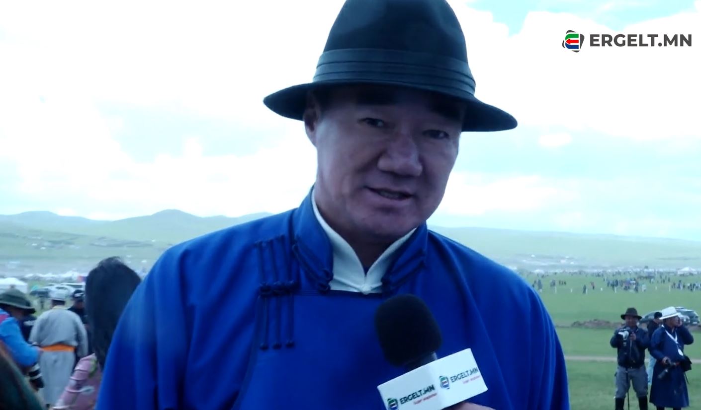 Тэрбээр "Ардын хувьсгалын 100, 1001 жилийн ойн Үндэсний их баяр наадам сайхан болж байна. Монголынхоо ард түмэнд баяр наадмын мэнд хүргэе. Та бүхэн морь нь хурдан, бөх нь хүчтэй, сум нь мэргэн сайхан наадацгаагаарай. Сүүлийн хоёр жил монголчууд маань баяр наадмаа тэмдэглэж чадаагүй. Монголчуудын эв нэгдэл, тусгаар тогтнол болсон баяр наадмаа ард түмэн маань үнэхээр их хүсэн хүлээсэн байна. Соёолонгийн тоосонд орох гэж Хүй долоон худаг руу зорьж ирлээ. Сайхан ерөөлөөр Ховд аймгийн Мянгад сумын уяач Батсуурийн Энхбаярын маань соёолон хол тасарч түрүүлж наадамчин олноо баясгалаа. Нутгийн уул ус, хүн зоноо баярлуулсан үнэхээр сайхан наадам болж байна" гэв.