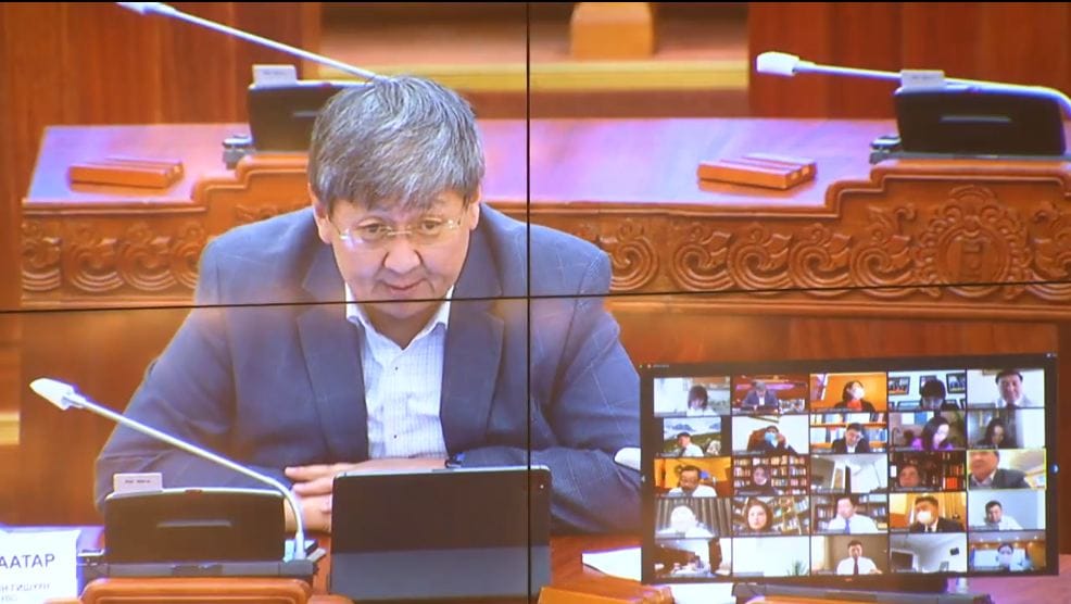 Монгол Улсын нэгдсэн төсвийн 2021 оны төсвийн хүрээний мэдэгдэл, 2022-2023 оны төсвийн төсөөллийн тухай хуульд өөрчлөлт оруулах тухай хуулийн төслийн чуулганы нэгдсэн хуралдаанаар хэлэлцэж байна.