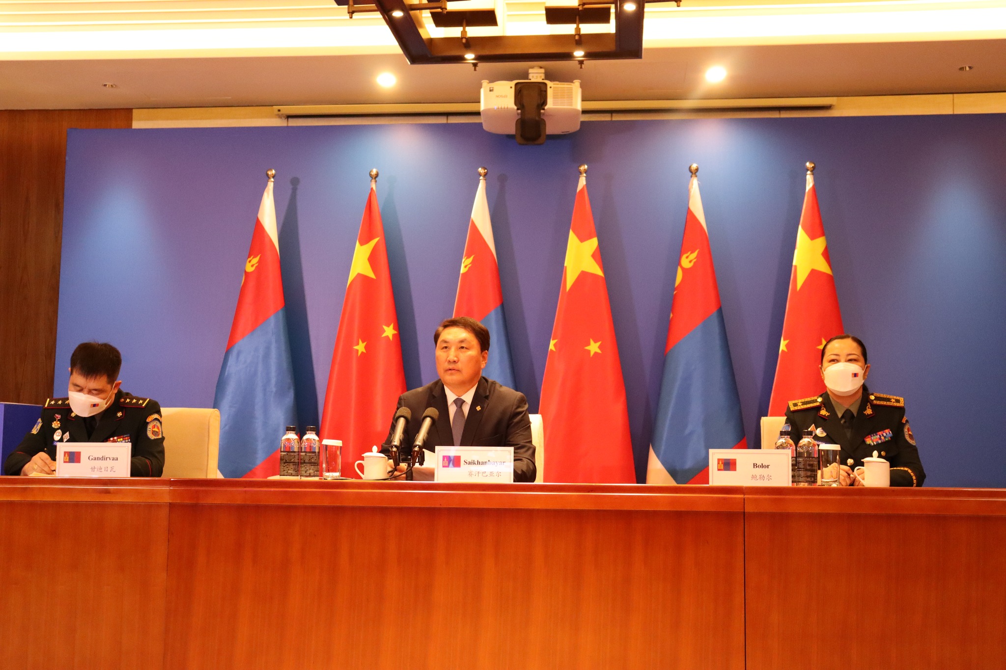 Батлан хамгаалахын сайд Г.Сайханбаяр хэлсэн үгэндээ “Монгол Улс, БНХАУ нь түүхийн уламжлалт найрсаг харилцаатай, мөнхийн хөрш улсууд бөгөөд эдүгээ хоёр улсын харилцаа иж бүрэн стратегийн түншлэлийн харилцааны нэн тааламжтай түвшинд хөгжиж буйг онцлоод, хоёр улсын батлан хамгаалах салбарын хамтын ажиллагаа дээд, дунд түвшний харилцан айлчлалууд, батлан хамгаалах, аюулгүй байдлын асуудлаарх Батлан хамгаалах яамд хоорондын бодлогын зөвлөлдөх уулзалт тогтмолжиж, цэргийн мэргэжилтэн бэлтгэх, хоёр талын хамтарсан цэргийн сургалт, дадлага явуулах, БНХАУ-ын БХЯ-наас манай улсын зэвсэгт хүчинд буцалтгүй тусламж үзүүлэх зэрэг чиглэлээр гүнзгийрэн хөгжиж буйд сэтгэл хангалуун байдаг тухайгаа илэрхийлж, цаашид Цэргийн эмнэлгүүдийн хамтын ажиллагааг шинэ шатанд гаргах, эмч, эмнэлгийн мэргэжилтнүүдийг харилцан дадлагажуулах, туршлага солилцох зэргээр өргөжүүлэх, цар тахлын нөхцөл байдлаас шалтгаалан сургуульдаа суралцах боломжгүй байгаа оюутан, сонсогчдын сургалтыг ойрын хугацаанд эхлүүлэх, хоёр орны Батлан хамгаалахын найрамдлын төлөөлөгчдийн харилцан айлчлалыг үргэлжлүүлэх” зэргийг илэрхийлсэн.