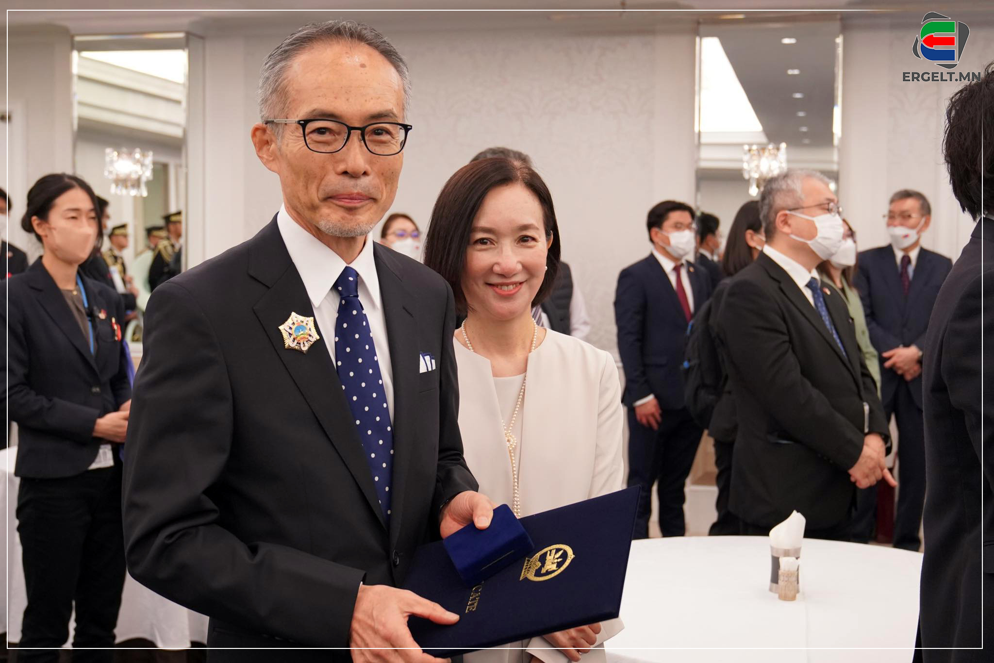 Монгол Улс, Япон Улсын хооронд дипломат харилцаа тогтоосны 50 жилийн ойг тохиолдуулан хоёр улсын харилцаанд оруулсан үнэтэй хувь нэмэр, хөдөлмөр, зүтгэлийг нь үнэлж Япон Улсын иргэн, Япон Улсаас Монгол Улсад суугаа элчин сайд асан Монгол Улсын төрийн одон, медаль болох Алтан гадас одонгоор шагналаа. Шагналыг Монгол Улсын Ерөнхийлөгч У.Хүрэлсүх Япон улсад хийж буй айлчлалын үеэр албан ёсоор гардуулсан юм. Энэ үеэр баярын сэтгэгдлийг нь хуваалцлаа.