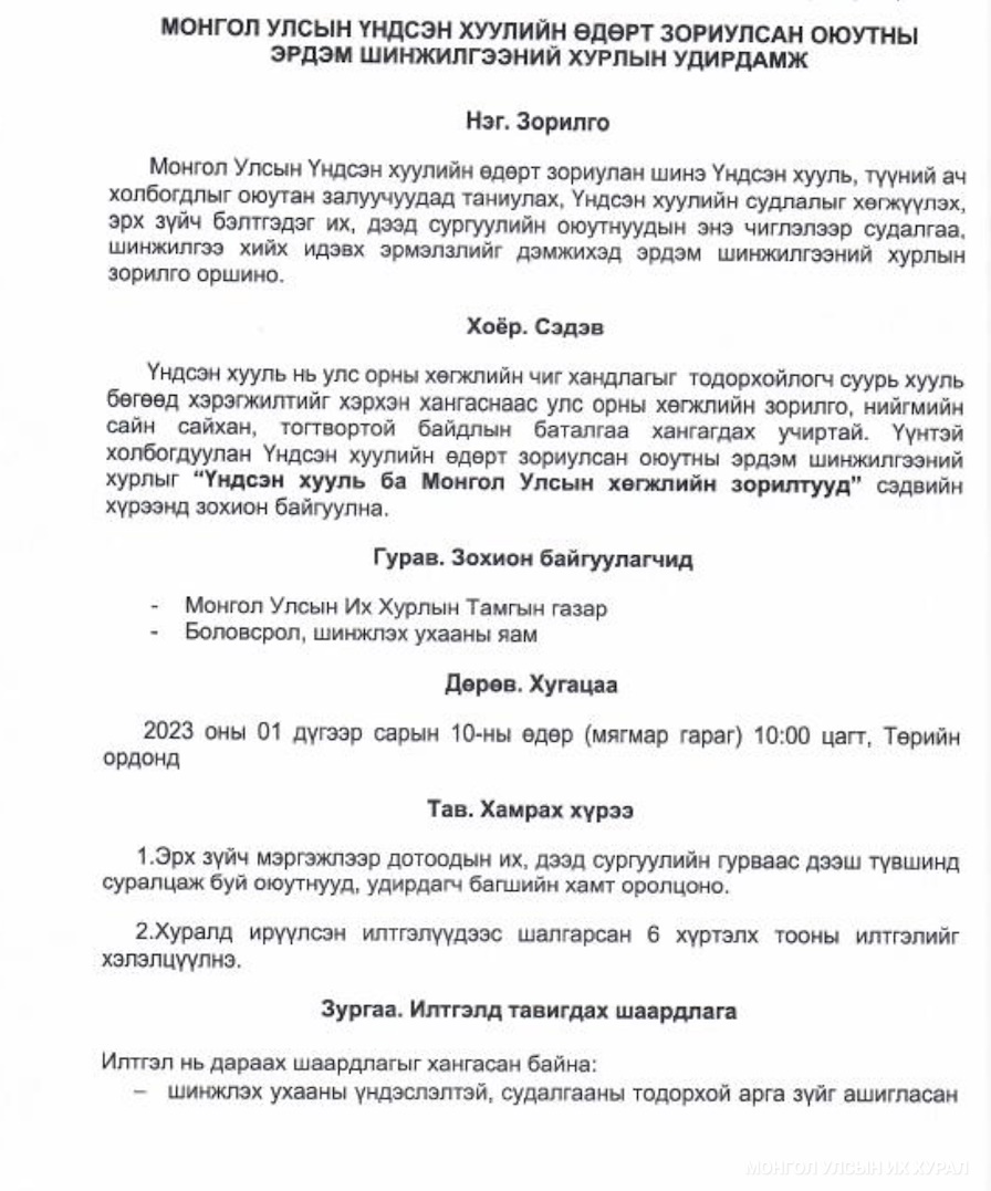 | Монгол Улсын Үндсэн хуулийн өдөрт зориулсан оюутны эрдэм шинжилгээний хурал энэ сарын 10-ны өдөр болно |