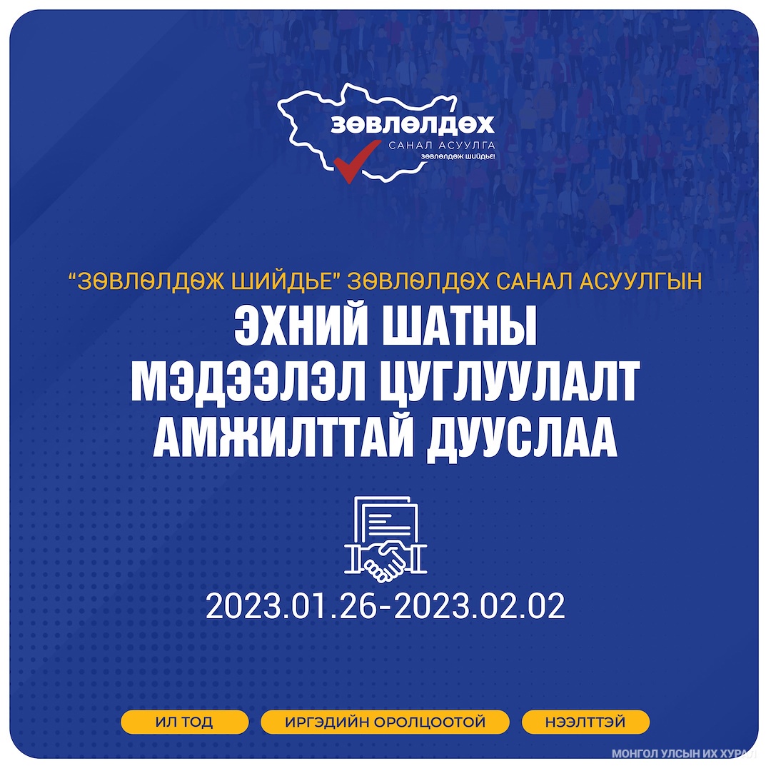 | "Зөвлөлдөж шийдье" зөвлөлдөх санал асуулгын I шатны мэдээлэл цуглуулалт амжилттай дууслаа |