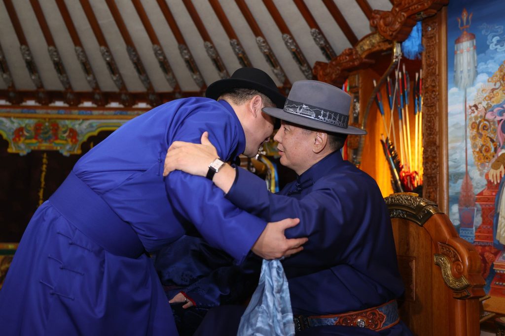 | Төрийн гурван өндөрлөг Есөн хөлт цагаан туганд хүндэтгэл үзүүлж, Төрийн золголт хийлээ |