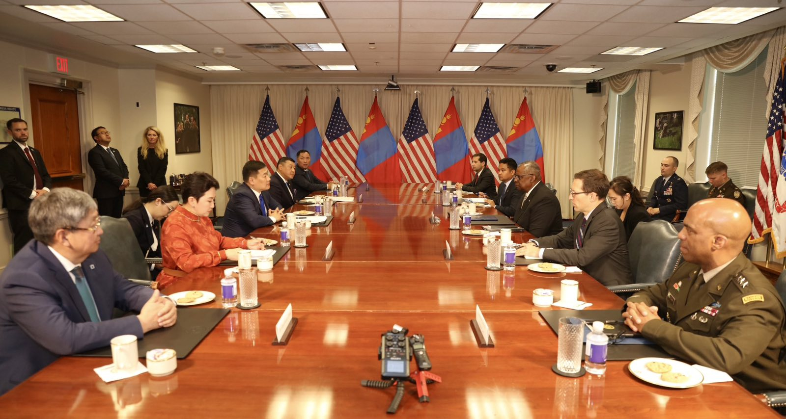 Мөн Батлан хамгаалахын сайд Л.Остин Монгол Улсын олон улсын болон НҮБ-ын энхийг сахиулах үйл хэрэгт оруулж байгаа хүчин чармайлт, Монголын Зэвсэгт хүчний ур чадварыг өндрөөр үнэлж, АНУ-ын энхийг сахиулагчидтай Афганистан, Ирак улсад олон жилийн турш мөр зэрэгцэн үүрэг гүйцэтгэсэнд талархал илэрхийллээ.