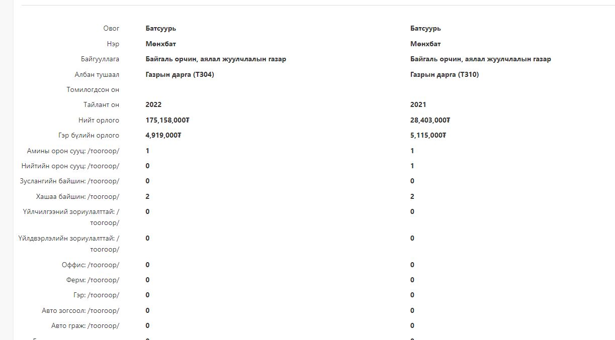 Завхан аймгийн Байгаль орчин, аялал жуулчлалын газрын дарга Б.Мөнхбатын хөрөнгө орлогын мэдүүлгийг судлаад үзвэл тэрбээр 2017 оноос анх мэдүүлгээ өгч эхэлсэн байна. Тэгвэл бид 2021, 2022 оны хөрөнгө орлогын мэдүүлгийг харьцуулан танилцуулж байна.