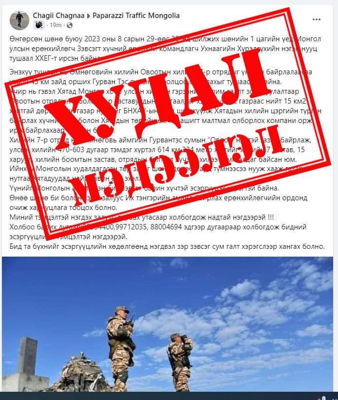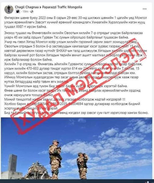 Улсын хилийг татаж, хятадуудад зарсан тухай мэдээлэл өнгөрсөн наймдугаар сарын сүүлчээр цацагдсан байдаг. Мөн иргэдийг зэвсэгт бослогод уриалж, тэмцэхийг шаардсан билээ. Тэгвэл уг хуурамч мэдээллийг олон нийтэд цацаж, иргэдийг зэвсэгт бослогод уриалсан этгээдийг олж илрүүлжээ.