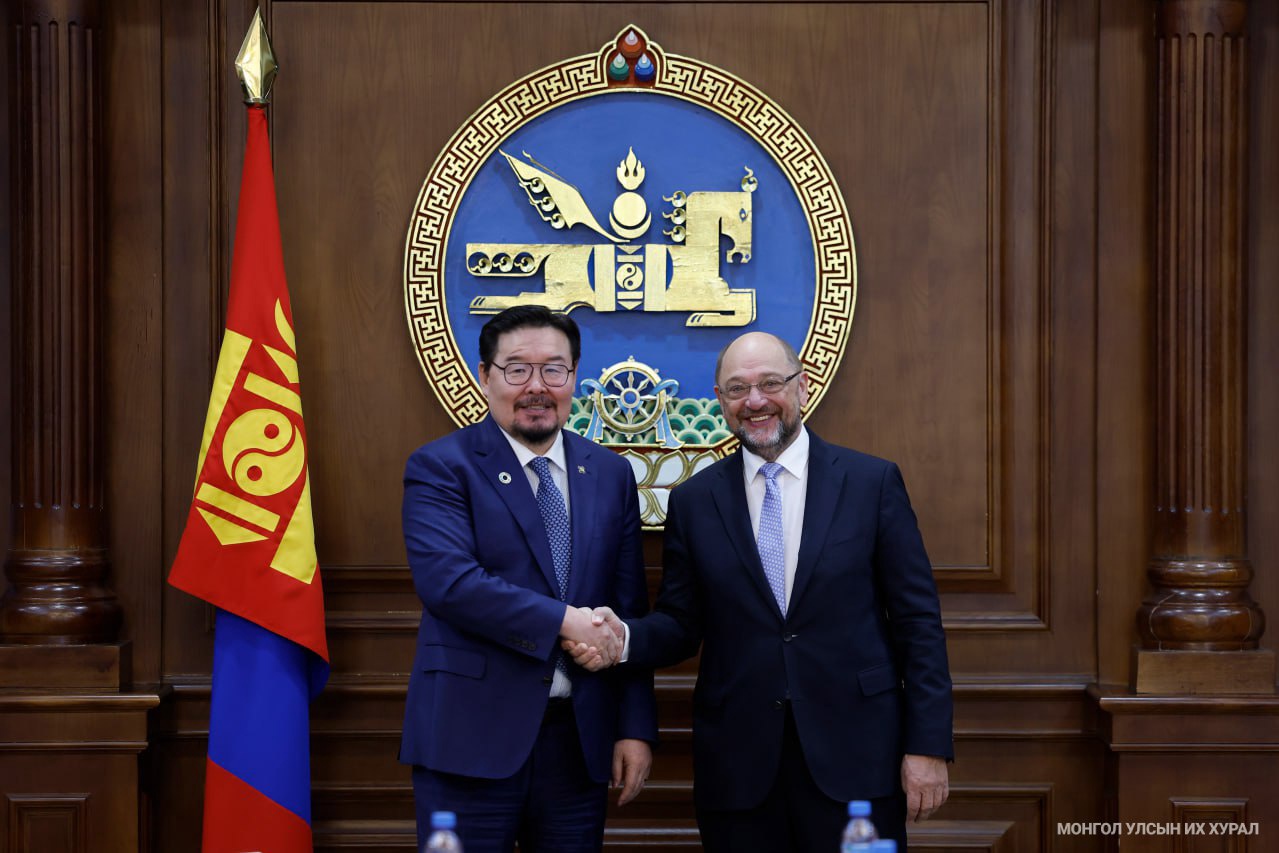 Фридрих-Эбертийн сангийн Ерөнхийлөгч Мартин Шульц Монгол Улсын Их Хурлын даргыг цаг зав гарган хүлээн авч уулзаж байгаа нь том хүндэтгэл хэмээн уулзалтын эхэнд тэмдэглэж, талархал илэрхийлэв. Тэрбээр, Фридрих-Эбертийн сан Монгол Улсад үйл ажиллагаа явуулж эхэлсний 30 жилийн ойг өчигдөр тэмдэглэж, өнгөрсөн хугацаанд дахь бидний үйл ажиллагааг Монгол Улсын төр засаг, иргэний нийгмийн байгууллагууд дэмжиж ажилласанд талархалтай байна. Цаашид сангийн үйл ажиллагааг өргөжүүлж, хамтран ажиллахад таатай байх болно гэлээ. Түүнчлэн, Монгол Улсын Их Хурал парламентынхаа ардчиллыг бэхжүүлэхэд олон чухал ажил хийж байгааг онцлон дурдмаар байна. Үүнд, Монгол Улсын Үндсэн хуульд оруулсан нэмэлт, өөрчлөлт, мөн сонгуулийн тухай хуульд эмэгтэйчүүдийн квотыг 40 хүртэлх хувиар нэмэгдүүлэхээр хуульчилсан нь чухал алхам болсон. Монголын парламентын хөгжлийг өндөр түвшинд авчрахад Улсын Их Хурлын даргын хувь нэмэр, үүрэг чухал болохыг сайшаан тэмдэглэв. Тэрбээр хэлэхдээ, парламентын ардчиллыг бэхжүүлэх амин сүнс нь олонх, цөөнхийн харилцааг зөв залах гэж үздэг. Дэлхийн улс орнуудын парламентын үйл ажиллагаатай танилцахад Их Британийн парламент уг амин сүнсийг хамгийн сайн хэрэгжүүлсэн байдаг. Тус орны парламент дахь цөөнхийн бүлгийн дарга нь сайдын түвшний эрэмбэтэй. Ингэснээр цөөнхийн бүлгийн дарга нь маргаашийн Засгийн газрынхаа тэргүүнээр ажиллах боломжийг бүрдүүлсэн философ юм. Энэ нь хамгийн сайн туршлага гэж харсан хэмээлээ.
