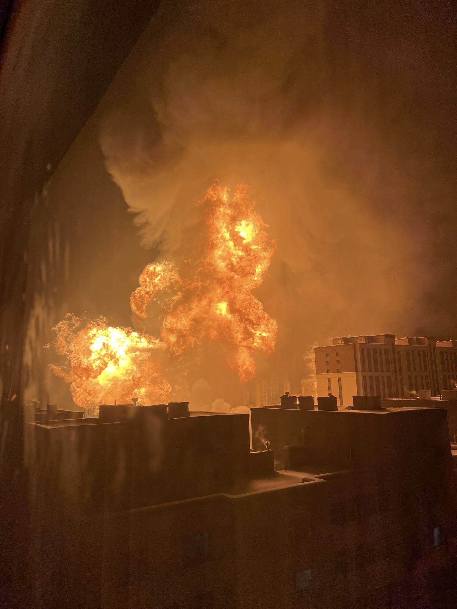 | СЭРЭМЖЛҮҮЛЭГ: 60 тонн газ тээвэрлэж явсан автомашин зам тээврийн ослын улмаас дэлбэрч, ойролцоох байр, машинууд шатаж байна |
