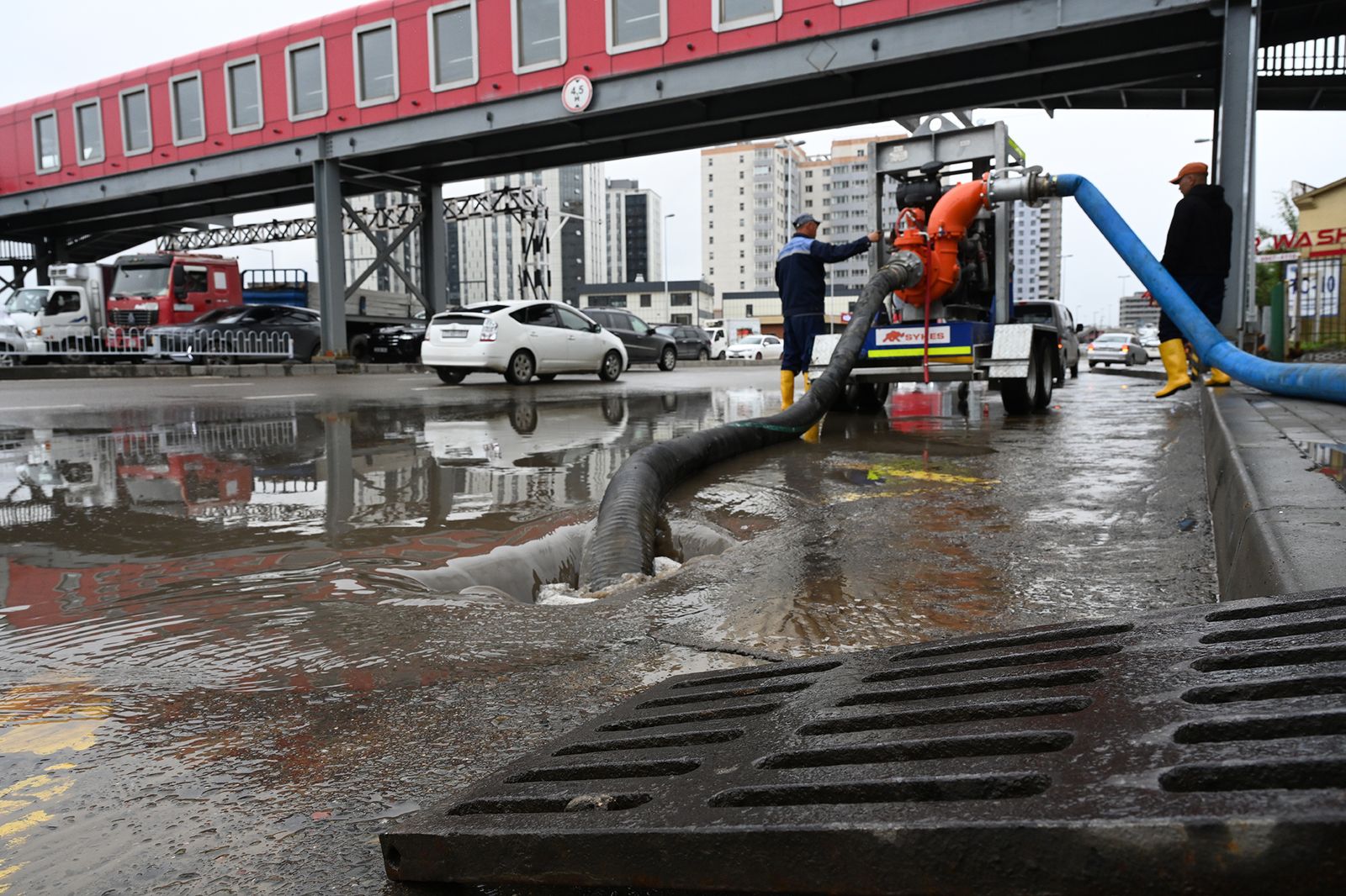 | Нарны гүүрний урд хэсэгт тогтсон усыг соруулж, замын зорчих хэсгийн нөхцөлийг хэвийн болгожээ |