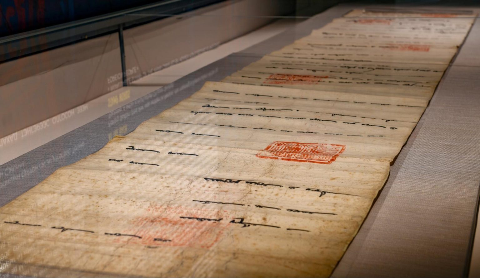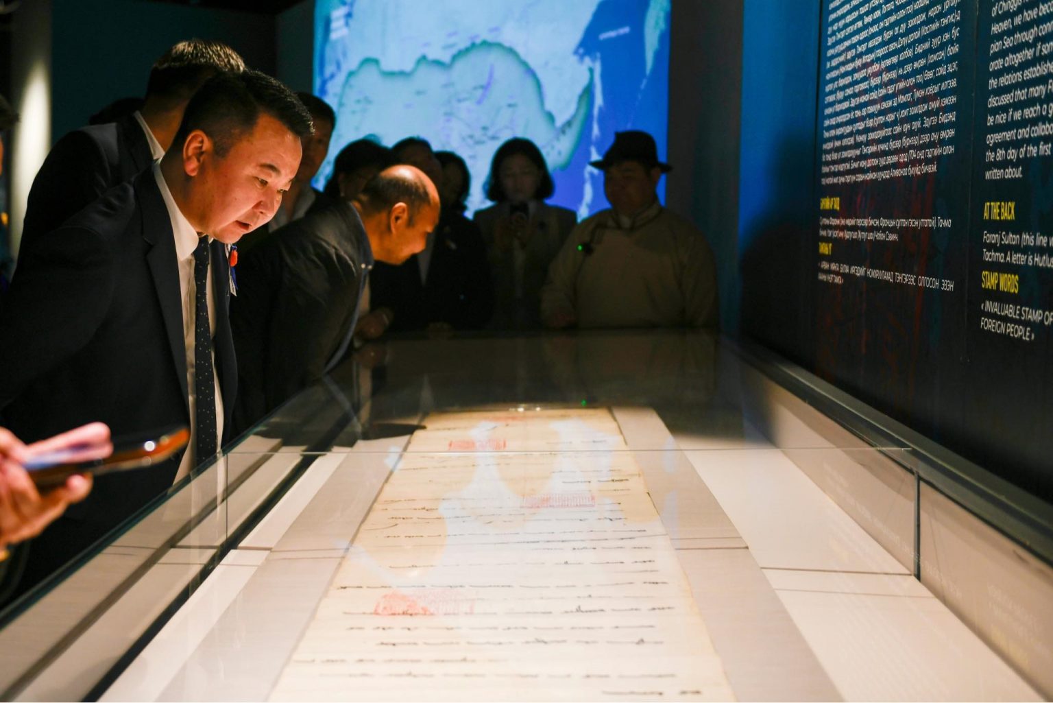 Үзэсгэлэнгийн онцлох гол дурсгал нь 1305 онд Ил хаан Өлзийтөөс Францын хаан Гоо Филиппт илгээсэн монгол бичгийн захидал юм. Энэ захидал нь монгол хаадын бичиг соёлын дахин давтагдашгүй үнэт өв, төрт ёсны аугаа уламжлал, монгол бичгийн гайхамшиг, монголын их амар амгаланг бүрэн илэрхийлдэг, үнэлж баршгшй түүхэн баримтад тооцогддог.