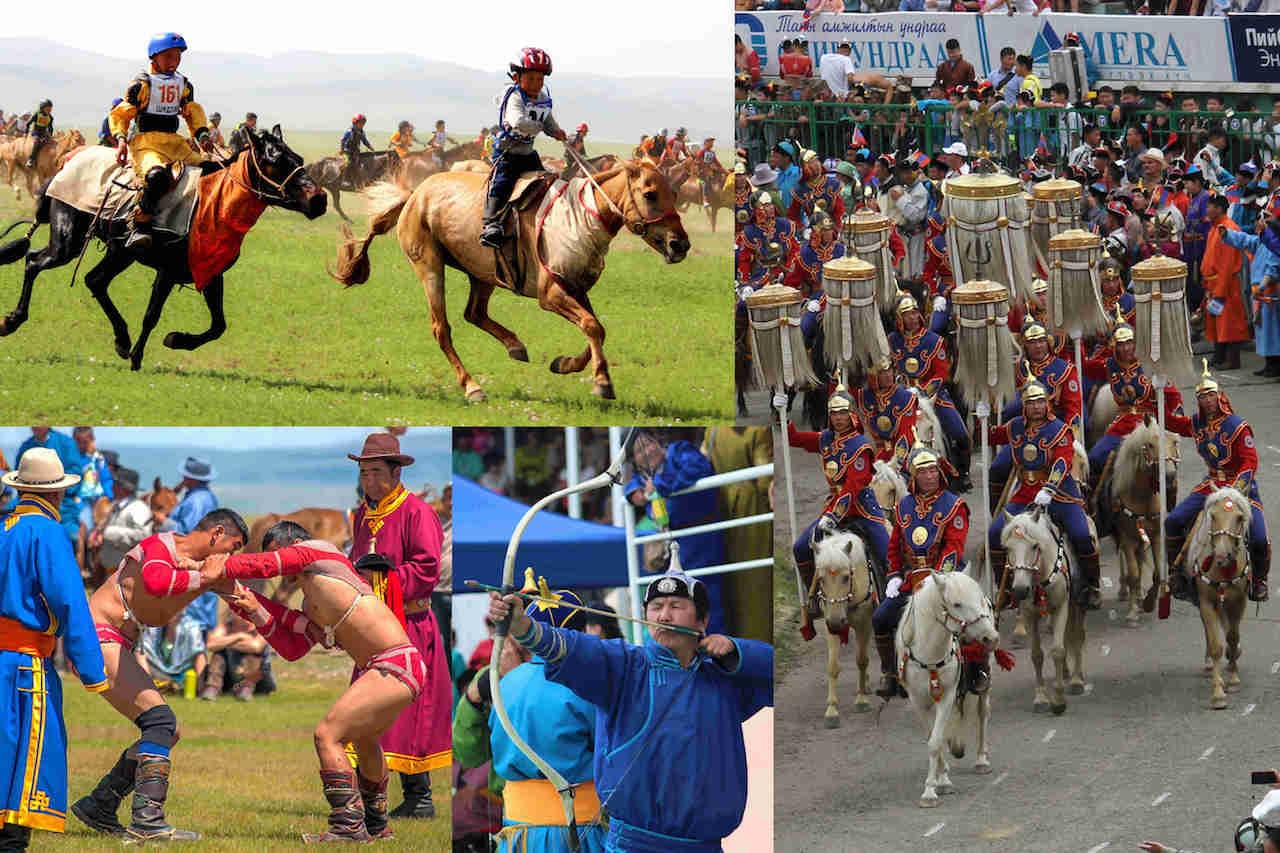 Наадмын өглөө мөн ч өнгөтэй байна даа. Дээл бүсээр гоёсон наадамчин олон өглөө эртлэн наадмын талбайг зорьж, Төрийн ордны төв хоймор ёслол хүндэтгэлийн танхимд залсан тусгаар тогтнолын бэлгэдэл есөн хөлт цагаан тугаа цэнгүүлэн Төв цэнгэлдэх хүрээлэндээ залж, Хүй долоон худагийн торгон ногоон дэвжээнээс хүлэг морьд барианы зурхайгаас гарч, эрхий мэргэн харваачид нь эвэр нумаа хөвчлөн татахаас монгол наадам эхэлдэг.