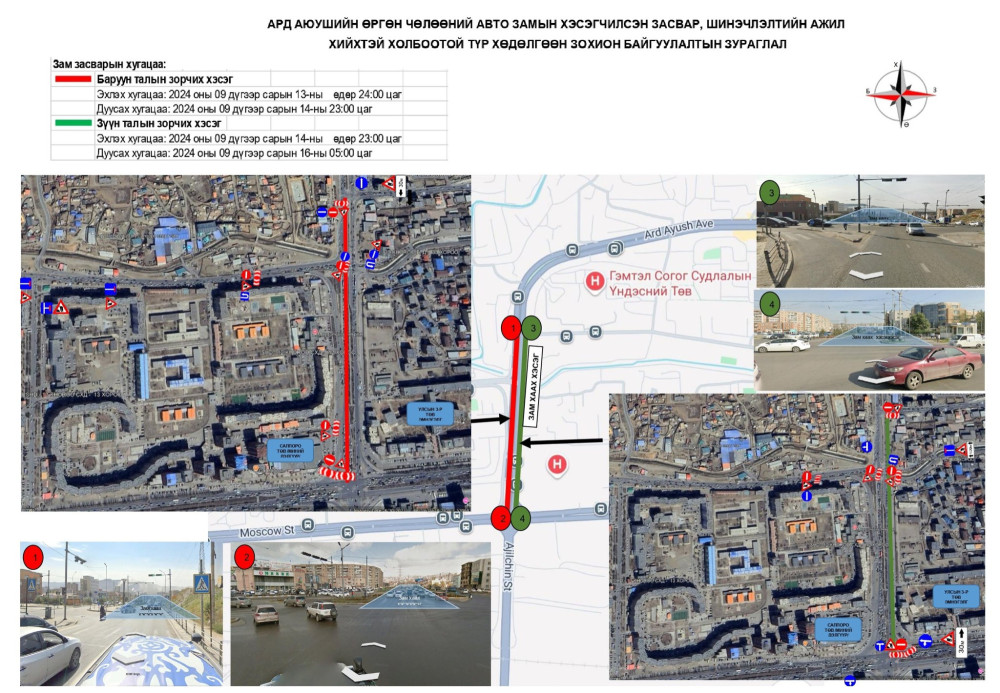 Ард аюушийн өргөн чөлөөний гудамж буюу Саппорагийн уулзвараас ГССҮТ-ийн уулзвар хүртэлх авто замыг есдүгээр сарын 13-ны 00:00 цагаас 16-ны 05:00 цагийн хооронд хааж шинэчилнэ. Энэ хугацаанд инженерийн шугам сүлжээний худгийн тагийг асфальт бетон хучилтын түвшинд тааруулах, хашлага солих зэрэг ажлыг гүйцэтгэх юм. Иймд иргэд, жолооч та бүхэн бусад замыг сонгон хөдөлгөөнд оролцоно уу.