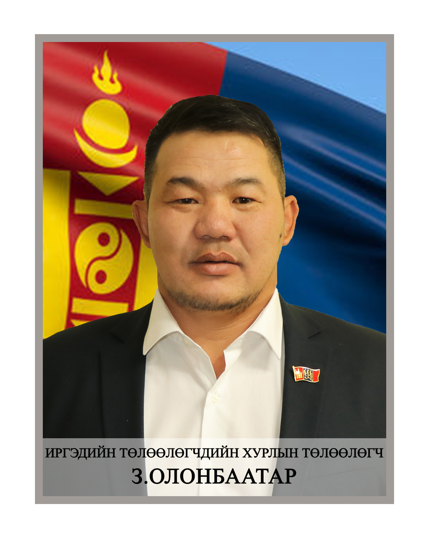 ИТХ-ын төлөөлөгч З.Олонбаатар: Дорноговь аймгийн Сүмбэр суманд төрсөн. Говьсүмбэр аймгийн нэгдүгээр сургуулийг дүүргэж, ХААИС-ийг зоо технологич мэргэжлээр төгсжээ. Тэрбээр сургуулиа төгссөнөөс хойш мал маллаж, 2004 онд мянгат малчин, 2006 онд хоёр мянгат малчин болсон байна. Мөн “Их сансар” ХХК-ийн захирал, “ Говийн өндөр уул” хоршооны тэргүүнээр ажилласан гэх намтартай нэгэн аж.