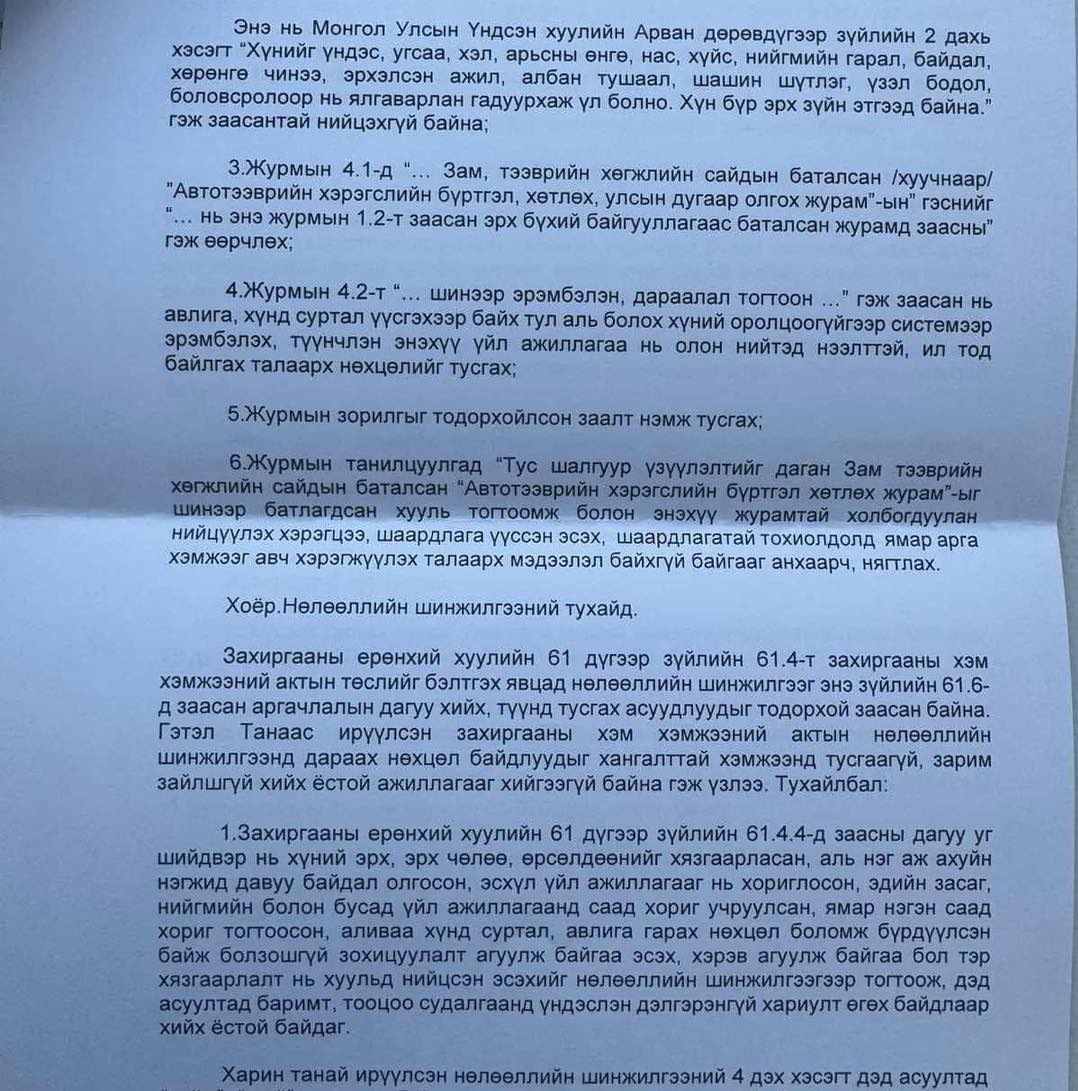 Л.ОЮУН-ЭРДЭНЭ, Д.АМАРБАЯСГАЛАН НАР ЕРӨНХИЙЛӨГЧТЭЙ ХЭЛЭЛЦЭЭРИЙН ШИРЭЭНД СУУХ ХҮРТЭЛХ УЛС ТӨРИЙН АКЦ