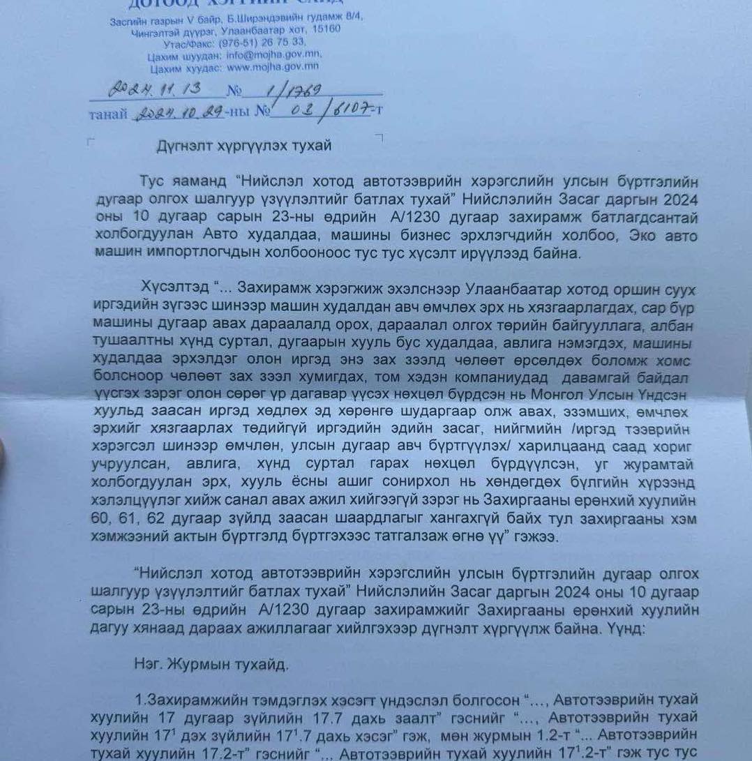 | О.АЛТАНГЭРЭЛ: Нийслэлд автомашины дугаар олгохгүй байгаа нь хүний эрх зөрчсөн, ялгараварлан гадуурхсан үйлдэл |