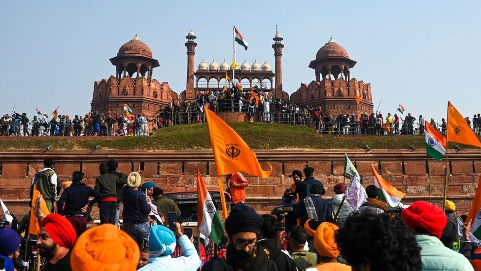 Энэтхэг Улсын тариаланчид Хөдөө аж ахуйн шинэчилсэн хуулийг эсэргүүцэн жагсаж байна. Олон мянган хүн Дели хотын Улаан Форт руу нэвтрэхийн тулд цагдаа нарын эсрэг нулимс асгаруулагч хий цацсан гэнэ. Үүний улмаас олон жагсагч цагдаа нартай мөргөлдөж, нэг эсэргүүцэгч нас баржээ.
