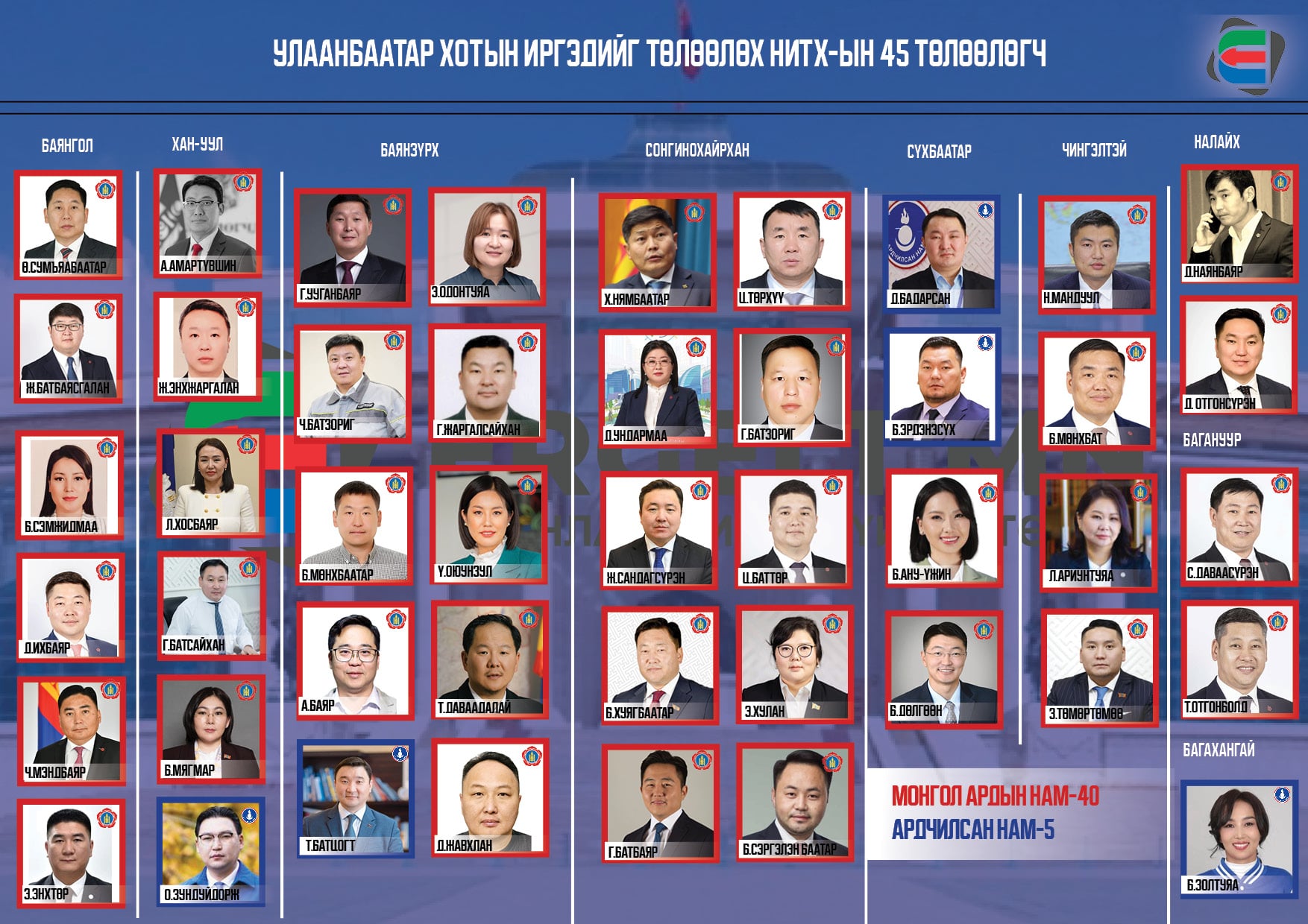 Аймаг нийслэлд МАН олонх болсон. Иймд нийслэлийн Засаг даргаар Х.Нямбаатар улирч, НИТХ-ын даргаар А.Баярыг томилсон юм. Ийн орон нутгийн сонгуульд АН болон ХҮН нам хангалтгүй оролцсон нь хамтарсан Засгийн газар байгуулсантай холбоотой гэж олон нийт шүүмжилж байна. Өөрөөр хэлбэл, УИХ-ын ээлжит сонгуулиар Ардчилсан нам 42, ХҮН нам найман суудал парламентад авсан. Сөрөг хүчний үүрэг гүйцэтгэх хэмжээний суудал авсан ч хамтарсан Засгийн газарт хоёр намын төлөөлөл багтсан нь улс төрийн намууд нэг “хөнжилд” орсон хэмээн дүгнэхэд хүргэж, иргэд дургүйцлээ илэрхийлээд байгаа юм. Тиймээс орон нутгийн сонгуульд Ардчилсан нам, ХҮН нам үнэмлэхүй ялагдал хүлээлээ.