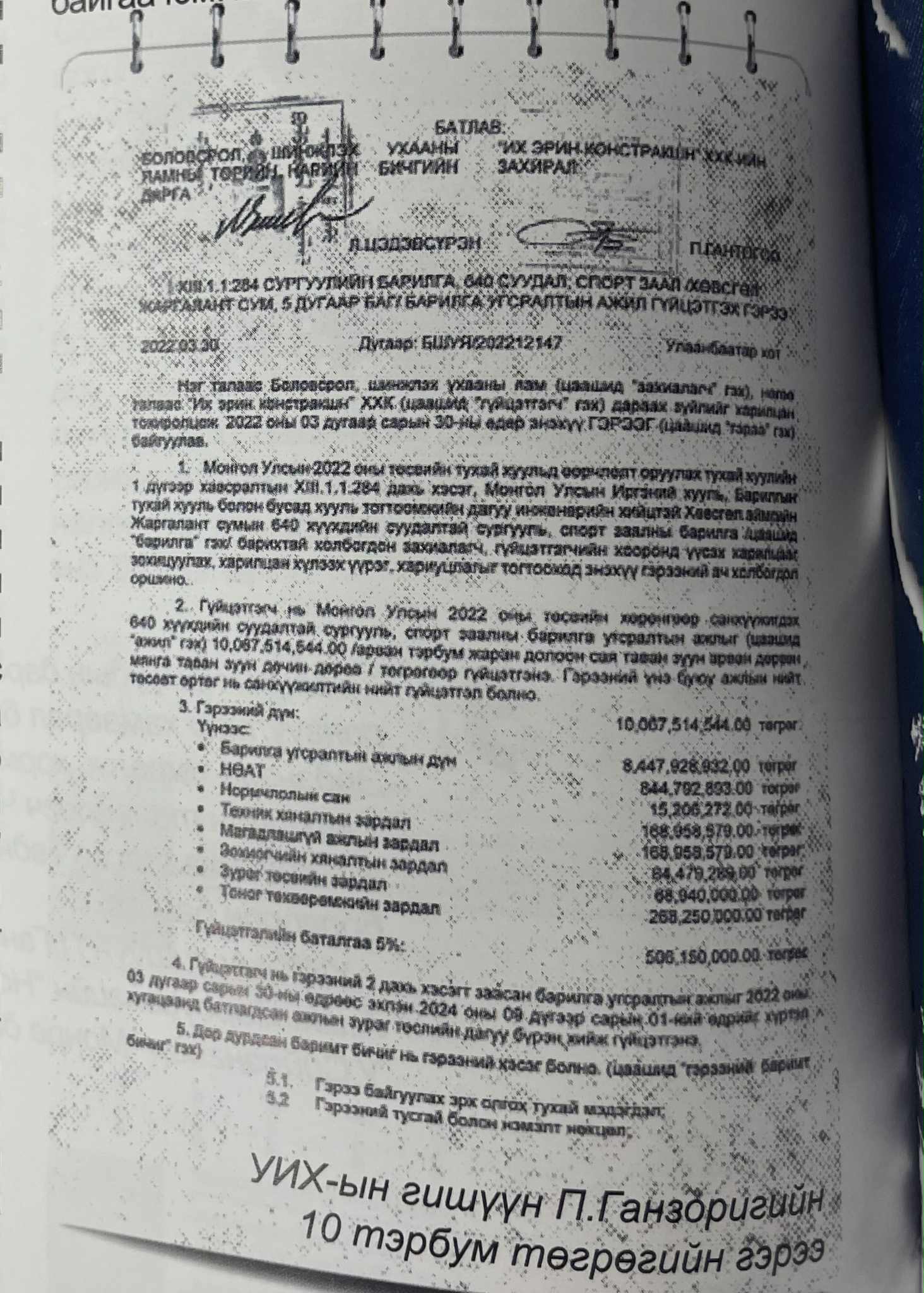 222233УИХ-ЫН ГИШҮҮН Ж.ЗОЛЖАРГАЛ АХДАА ТЕНДЕР ОЛЖ ӨГДӨГ ИНЖЕНЕР ҮҮ