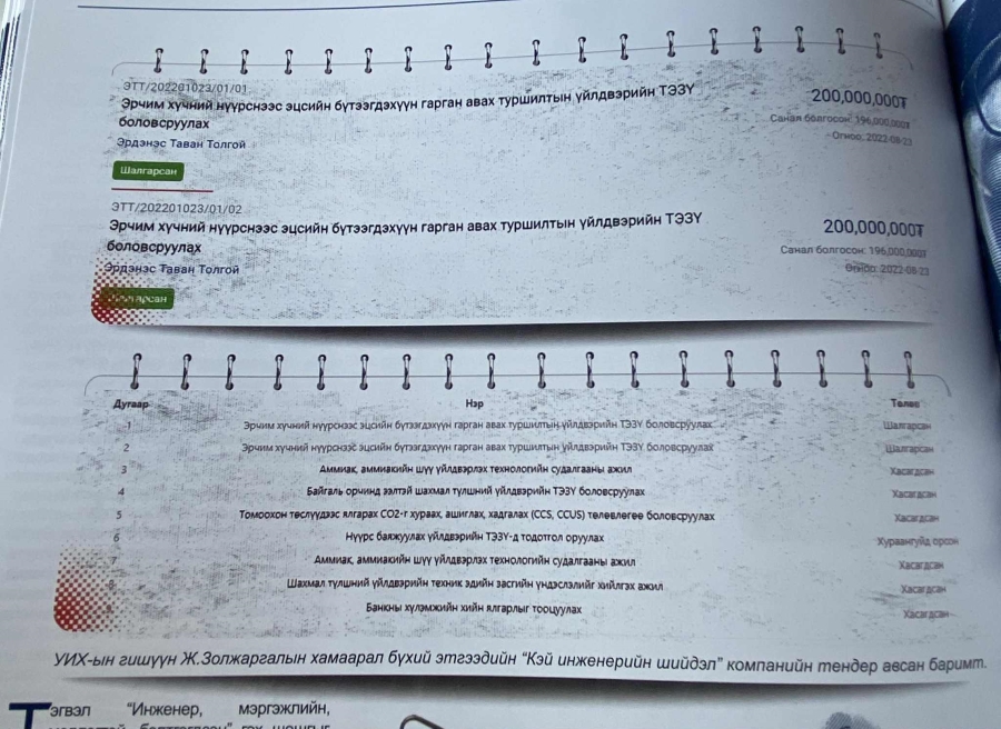 222233УИХ-ЫН ГИШҮҮН Ж.ЗОЛЖАРГАЛ АХДАА ТЕНДЕР ОЛЖ ӨГДӨГ ИНЖЕНЕР ҮҮ