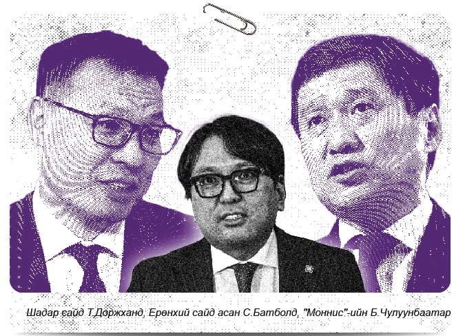 Гэхдээ “Моннис”-ийн Б.Чулуунбаатар “Нүүрсний хулгай”-н хэрэг болон Хөгжлийн банкны хэргийн нээлттэй сонсголын аль алинд нь “од” болоогүй, оролцоо ч үгүй. Уг нээлттэй сонсголуудыг ахалсан Б.Энхбаяр, Т.Доржханд хоёр нүүрс тээврийн жижиг компаниудын эздийн холбоо хамаарлыг нэгд нэггүй нэгжиж, нийтэд танилцуулсан мөртөө 107 тэрбум төгрөгийн зээл, их наяд орчмын тендер авсан “Моннис”-ийг бараг ярихгүй өнгөрөөсөн. Ядаж л “Голомт”-ын Д.Баясгалан нээлттэй сонсголд дуудагдаж ирээд, ээрч түгдрээд ч болтугай Б.Энхбаярт загнуулаад сууж байсныг санаж буй байх. Харин Б.Чулуунбаатар нээлттэй сонсголуудаас “хуурай” мултарсан.