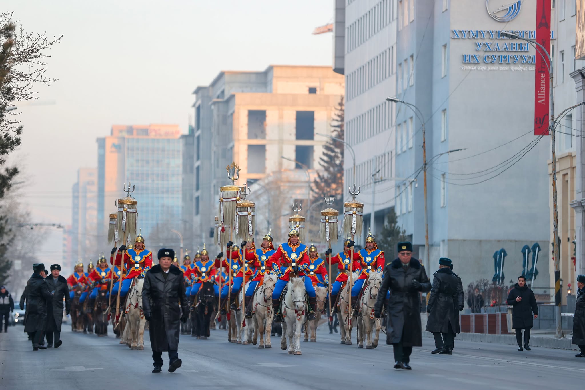 | Төрийн далбааг мандуулж, Их цагаан тугийг цэнгүүллээ |