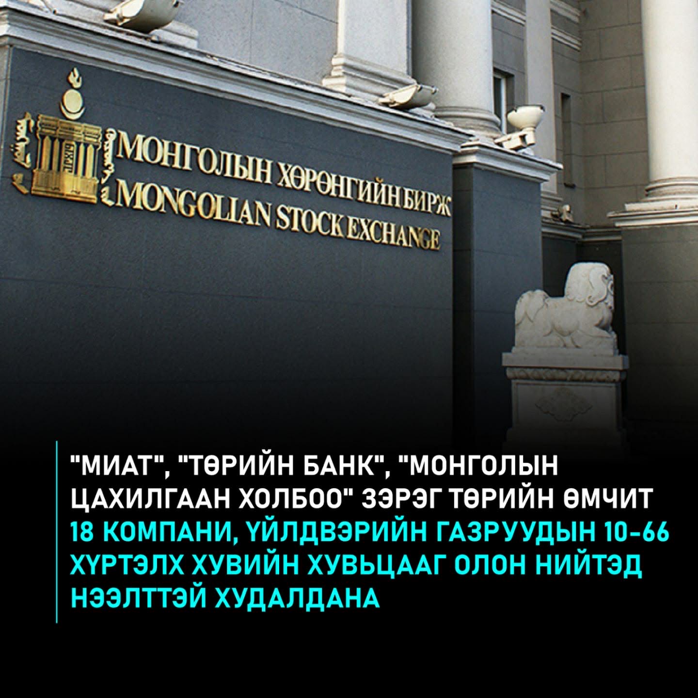 | ТӨРИЙН ӨМЧИТ 18 КОМПАНИ, ҮЙЛДВЭРИЙН ГАЗРЫН ХУВЬЦААГ ХУДАЛДАЖ, НЭЭЛТТЭЙ ХУВЬЦААТ КОМПАНИ БОЛГОНО |