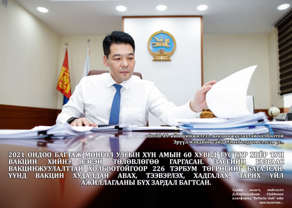Энэ талаар Эрүүл мэндийн сайд С.Энхболд “2021 онд багтаж Монгол Улс нийт хүн амынхаа 60 хувьд тус бүр хоёр тун вакцин хийнэ гэсэн төлөвлөгөө гаргасан. Засгийн газраас вакцинжуулалттай холбоотой 226 тэрбум төгрөгийг баталсан. Үүнд вакцин худалдан авах, тээвэрлэх, хадгалах, тарих зэрэг үйл ажиллагааны бүх зардал багтсан” гэв.