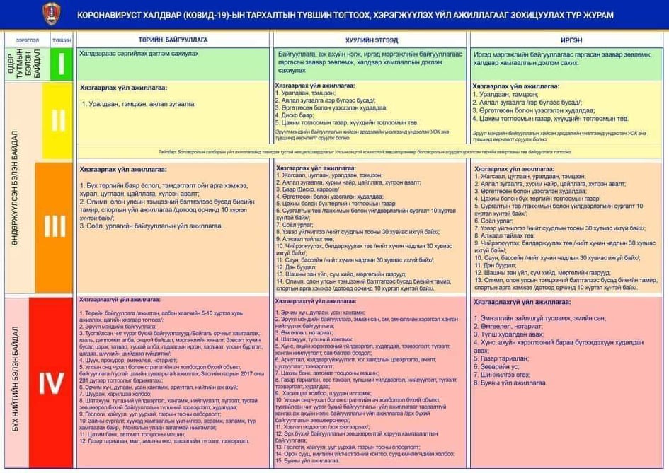 Засгийн газрын ээлжит бус хуралдаанаар дөрөвдүгээр сарын 10-25 хүртэл хатуу хөл хорио тогтоож, улаан түвшинд шилжүүлэх шийдвэр гаргасан. Тэгвэл энэ талаар Шадар сайд С.Амарсайхан "Хатуу хөл хорио тогтоох хугацаанд манаж, сахих шаардлага байхгүй. Энэ 15 хоногийн хугацаанд иргэд төртэйгөө хамтарч ажиллах хэрэгтэй. Иргэд ойролцоох хүнсний дэлгүүрээсээ худалдан авалт хийх хэрэгтэй" гэлээ.