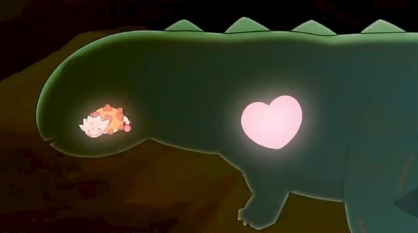 “Чи амттай юм” гэх этгээд нэртэй нэгэн анимэ үзэж байсан минь санаанд оров. Зохиолын хувьд одоогоос 76 сая жилийн өмнөх цаг үеийг харуулна. Зүрх гэх нэртэй махчин үлэг гүрвэл ан хийж явахдаа нэгэн өвсөн тэжээлтний өндгийг олсноор эхэлдэг. Түүний идэхээр завдахдаа “Амттай” гэж хэлсэн нь цуурсан өндөгний доторх бяцхан өвсөн тэжээлтэнд ч сонсогдохоор чанга байж. Удалгүй л өндөг гэнэтхэн бяцарч хагарсанд доторх нь бяцхан үлэг гүрвэл Зүрхийн толгой дээр гарч суув. Тэрээр “Амттай гэсэн. Миний нэр бол Амттай” гэж хэлж, энэ хүн миний эцэг юм байна гэсэн ойлголт сууснаар зохиол гол хэсэгтээ орно.