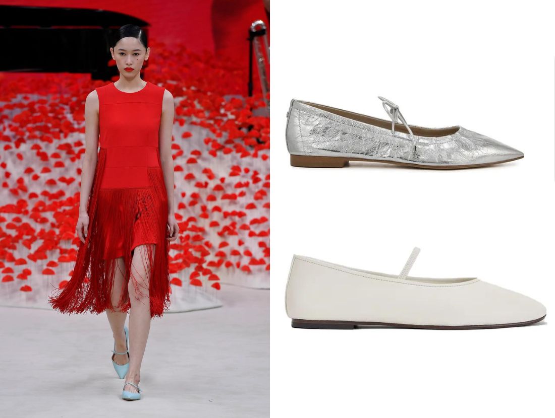 Тэгш, хурц өнцөгтэй загвартай даашинз баллетын гуталтай төгс зохицно.
