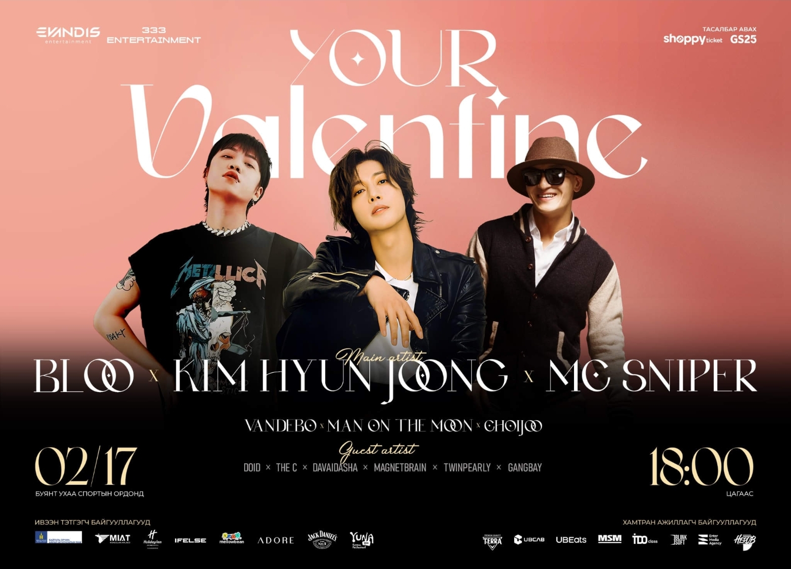 Өнөөдөр БНСУ-ын уран бүтээлчид "Your valentine" тоглолтоо зохион байгуулах билээ. Тус тоглолтод дуучин, жүжигчин Ким Хён Жун болон MC Sniper, Bloo, Монголын талаас дуучин Чойжоо, Vandebo, Gangbay тэргүүтэй уран бүтээлчид оролцох юм. Тоглолт өнөөдөр “Буянт-Ухаа” спорт цогцолборт болно.