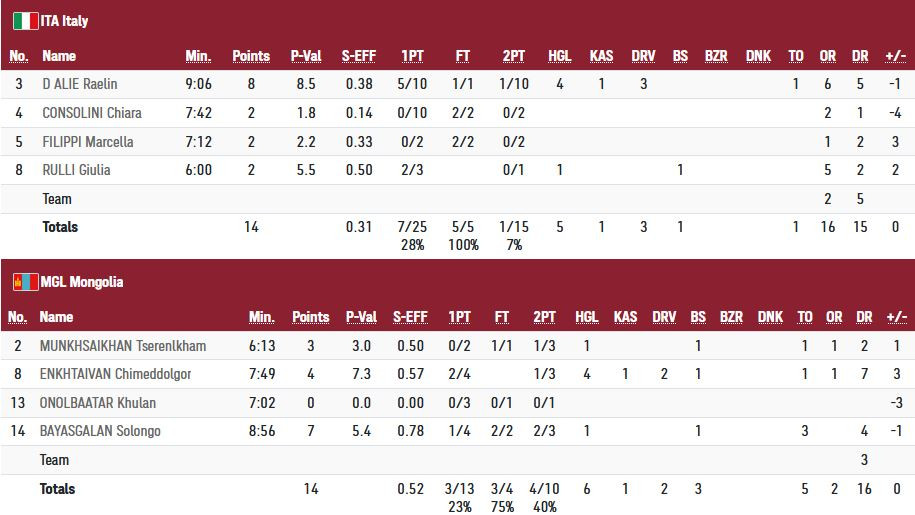 Монгол, Италийн багийн оноо авсан байдлыг хүргэж байна.