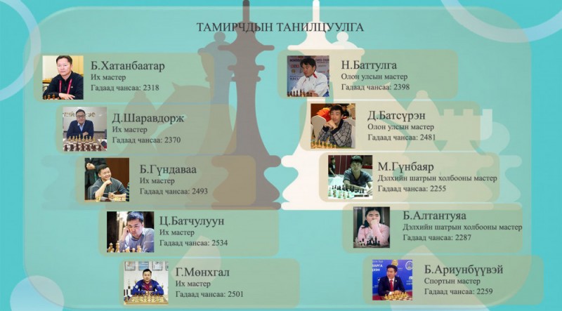 Тус хаалттай тойргийн тэмцээнд Монголын дараах шилдэг мастерууд оролцож байна. Үүнд: