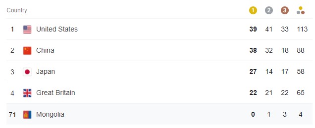 “Ковид-19” цар тахлын тархалттай холбоотойгоор “Токио-2020” зуны олимпын наадмын нээлт эхлэх хүртэл цуцлагдах магадлал өндөр байсан. Нэг жилийн хугацаанд хойшлогдоод байсан олимпын наадмыг зохион байгуулах хорооноос амжилттай зохион байгуулж, АНУ-ын шигшээ баг нийт 113 медальтайгаар тэргүүлж, ээлжит зуны олимпын наадмыг өндөрлүүлэв. Үүний араас БНХАУ-ын шигшээ баг 88 медальтайгаар удаалж байгаа бол наадмыг зохион байгуулагч Япон Улсын шигшээ баг нийт 58 медальтайгаар гуравдугаар байр эзэлсэн юм.