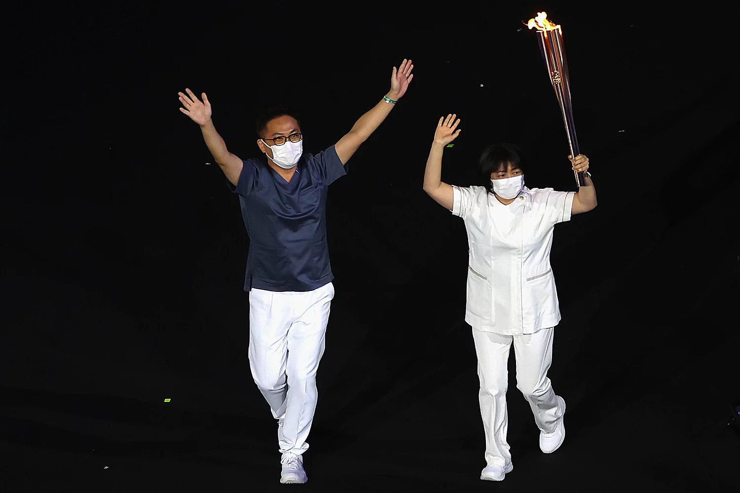 “Токио-2020” олимпын наадмын нээлтийн ёслолд Олон улсын олимпын хорооны Ерөнхийлөгч Томас Бах үг хэлэхдээ “Цар тахал биднийг нэгнээсээ зайгаа барьж, хайртай хүмүүсээсээ ч холдоход хүргэсэн. “Ковид-19” халдварын үе бидний урьд өмнө нь харж байгаагүй гүн харанхуй хонгилыг бүтээсэн юм. Гэхдээ өнөөдөр дэлхийд бага ч болов инээмсэглэл өгч, гэрэл гэгээ цацруулах энэ мөчийг хуваалцахаар 206 үндэстэн нэг дор цугларчээ. Цар тахлын энэ хүнд үед маш олон саад бэрхшээлийг даван туулж, энд ирсэн олон улсын тамирчдадаа баярлалаа гэж хэлмээр байна. Та бүхэн тэмцэж, тэвчиж, хэзээ ч бууж өгөлгүй өнөөдөр энд өөр өөрсдийн, өөр үндэстний олимпын мөрөөдлийг биелүүлж байна. Мөн цар тахлын эсрэг тэмцэж байгаа эмч, эмнэлгийн ажилтан, сувилагч нартаа баярлалаа” хэмээсэн юм. Үүний дараа Япон Улсын шигшээ багийг тэргүүлж, эмч, сувилагч нар Японы тугийг барин цэнгэлдэхийн төвд гарч ирснээр олимпод оролцож байгаа орнуудын танилцуулга эхэлсэн. Харин сагсан бөмбөгийн 3х3 төрлийн эмэгтэй шигшээ багийн тамирчин О.Хулан, гавьяат тамирчин Ө.Дүүрэнбаяр Монгол Улсын шигшээ багийн тугчаар ажилласан билээ.