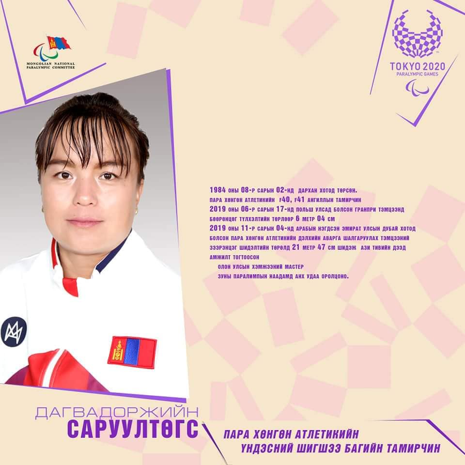"Токио-2020" паралимпийн хөнгөн атлетикийн тэмцээнүүд үргэлжилж байна.Өнөөдөрө манай улсын зээрэнцэг шидэлтийн тамирчин Д.Саруултөгс болон Т53 ангиллын 100 метрийн уралдаанд П.Энхманлай нар оролцоно. Одоогийн байдлаар Монгол Улс "Токио-2020" паралимпийн наадмаас нэг алтан медаль хүртээд байгаа билээ.