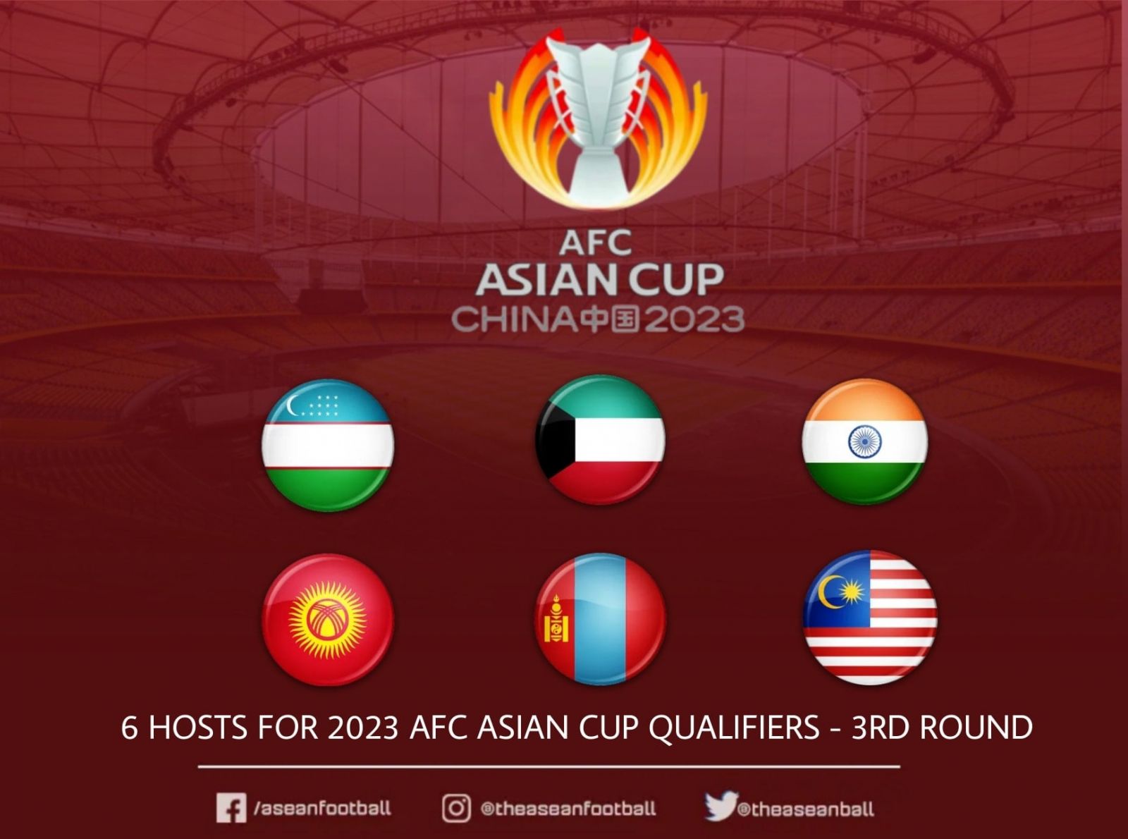 Монгол Улс 2023 онд БНХАУ-д зохион байгуулагдах хөл бөмбөгийн Азийн аварга шалгаруулах тэмцээн буюу "Азийн цом"-ын тэмцээний урьдчилсан III шатны хэсгийн тоглолтуудыг энэ оны зургадугаар сард хүлээн авч, зохион байгуулахаар сонгогдлоо.
