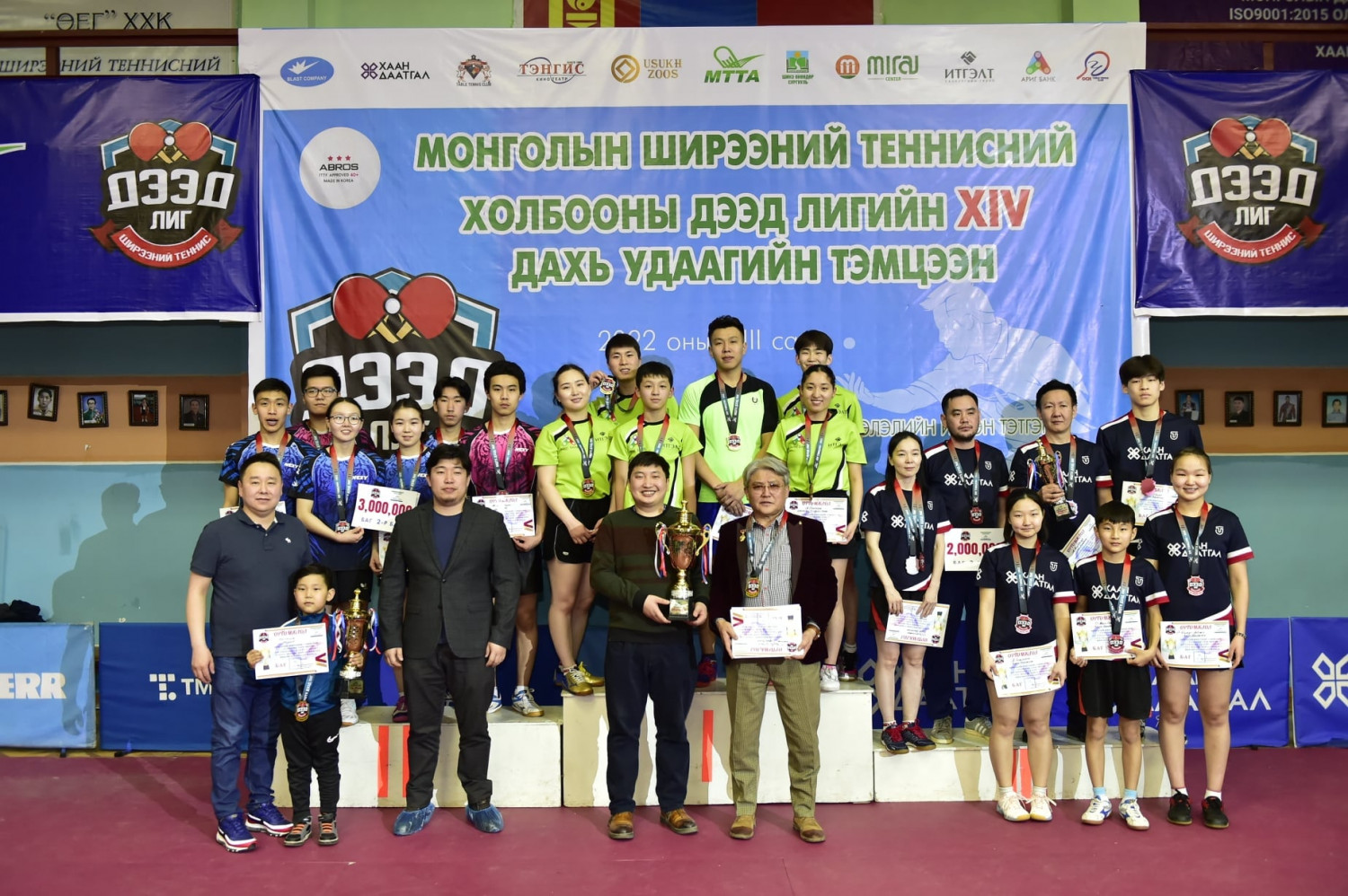 Монголын ширээний теннисний холбооны дэд лигийн 14 дэх удаагийн тэмцээн өнгөрсөн амралтын өдөр болж аваргуудаа тодрууллаа. Эрэгтэйчүүдийн ганцаарчилсан төрөлд "УБ Сенима" багийн Ө.Балжинням түрүүлсэн бол эмэгтэй ганцаарчилсан төрөлд "Мираж" багийн М.Тэмүүлэн түрүүлжээ. Багийн дүнгээр тэргүүн байрыг Д.Болд дасгалжуулагчтай "Ариг банк -Итгэлт" санхүүгийн групп эзэлсэн бол Л.Баярмагнай дасгалжуулагчтай "Мираж" баг дэд байрыг эзэллээ.