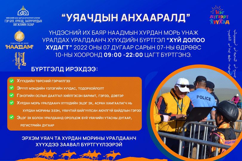 - Хурдан морь уралдаанч хүүхдийн эцэг эх, асран хамгаалагч нь хурдан морины эзэн, уяачтай хийсэн аюулгүй байдлын гэрээ хийх аж.