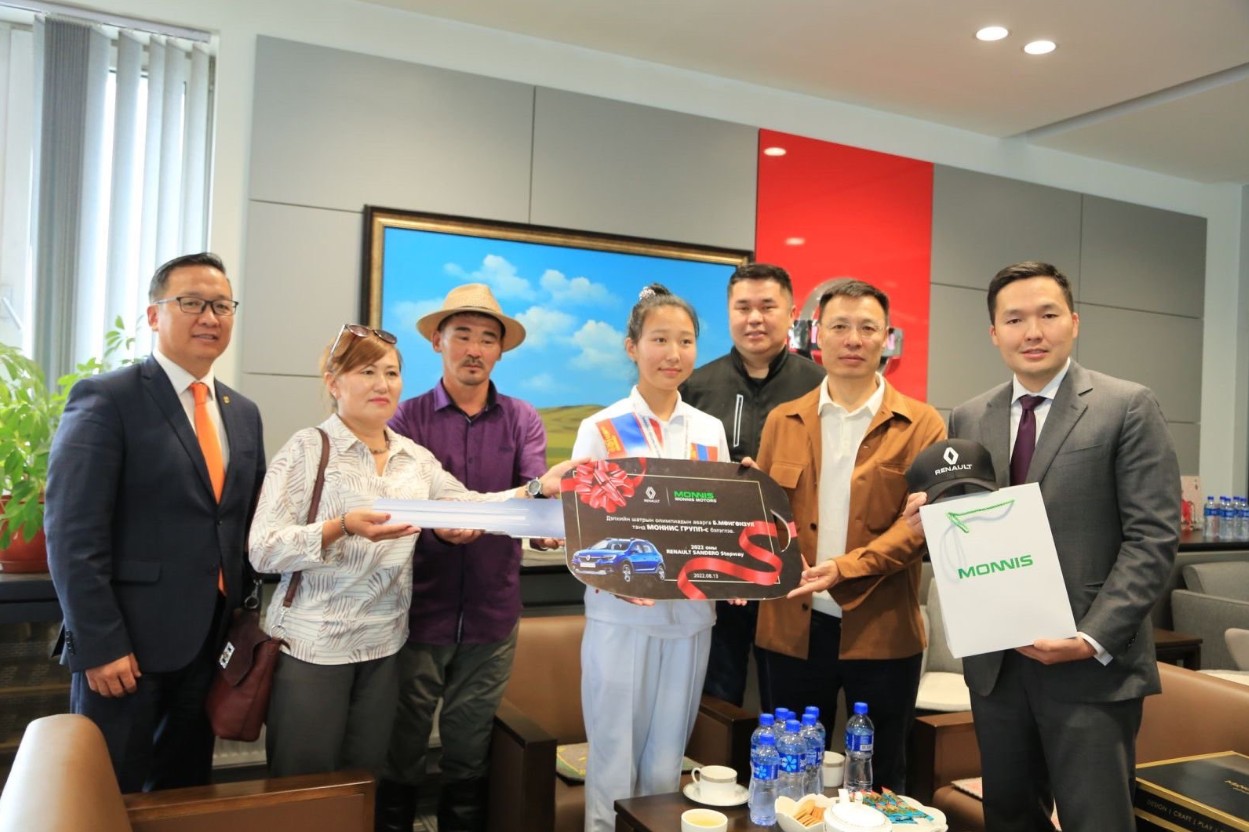 "Моннис" групп шатарчин Б.Мөнгөнзулд машин бэлэглэв. Дэлхийн шатрын холбооны 44 дүгээр олимпиадад түүхэн амжилт гаргаж алтан медаль хүртсэн 17 настай Б.Мөнгөнзул охинд "Моннис Моторс" компани “Рено” брэндийн "Sandero Stepaway" автомашин, "Аэро Монголиа" компани олон улсын нислэгийн эрхүүдийг тус тус бэлэглэсэн байна.