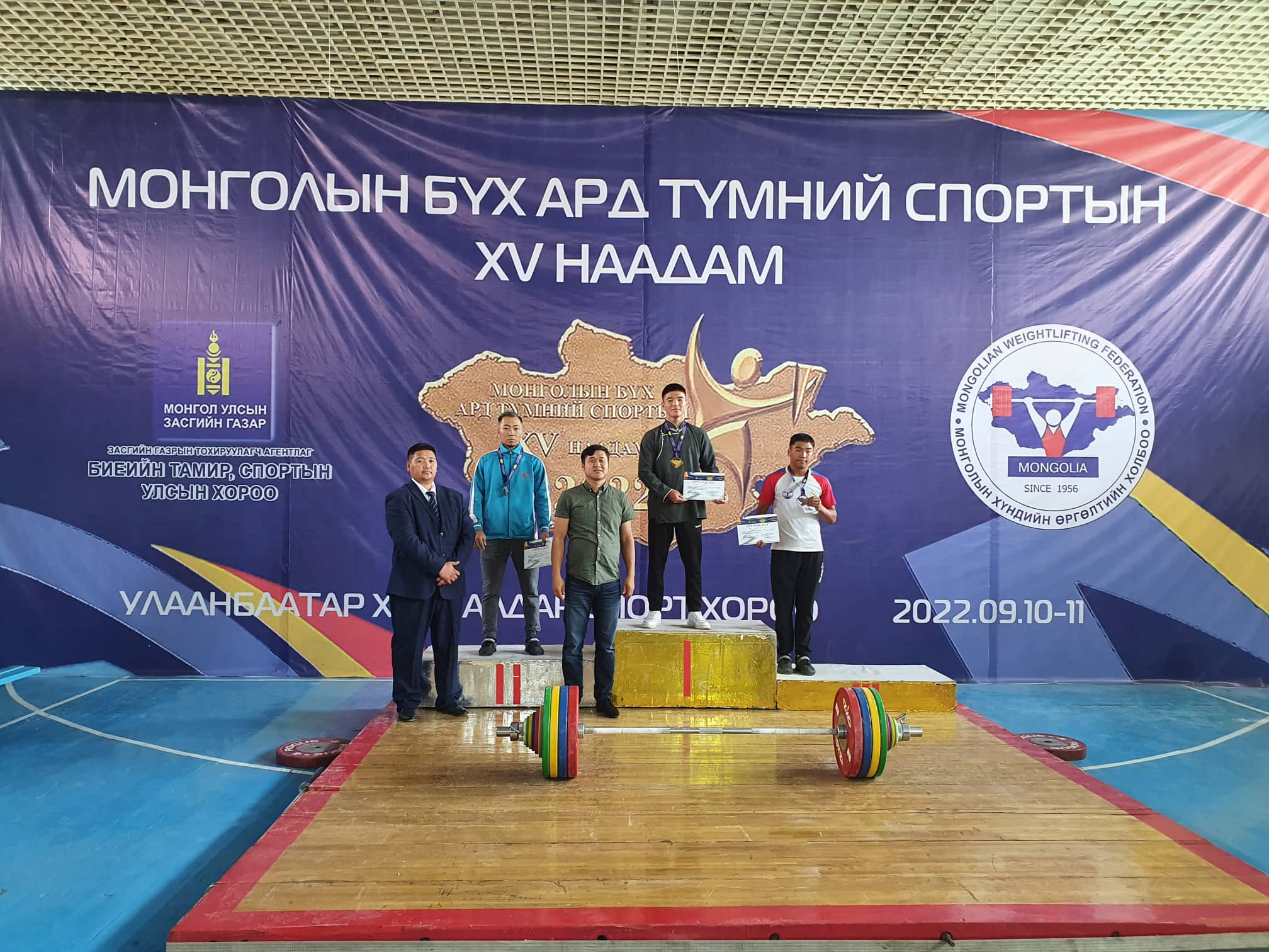 Монголын бүх ард түмний спортын XV наадмын хүндийн өргөлтийн шигшээ тэмцээн “Алдар” спорт хорооны “Б” зааланд бож байна. Тэмцээнд 12 багийн нийт 106 тамирчин эрэгтэй, эмэгтэй тус бүр долоон жинд хүч үзсэнээс үдээс өмнөх дөрвөн жингийн медальтнууд тодорлоо.
