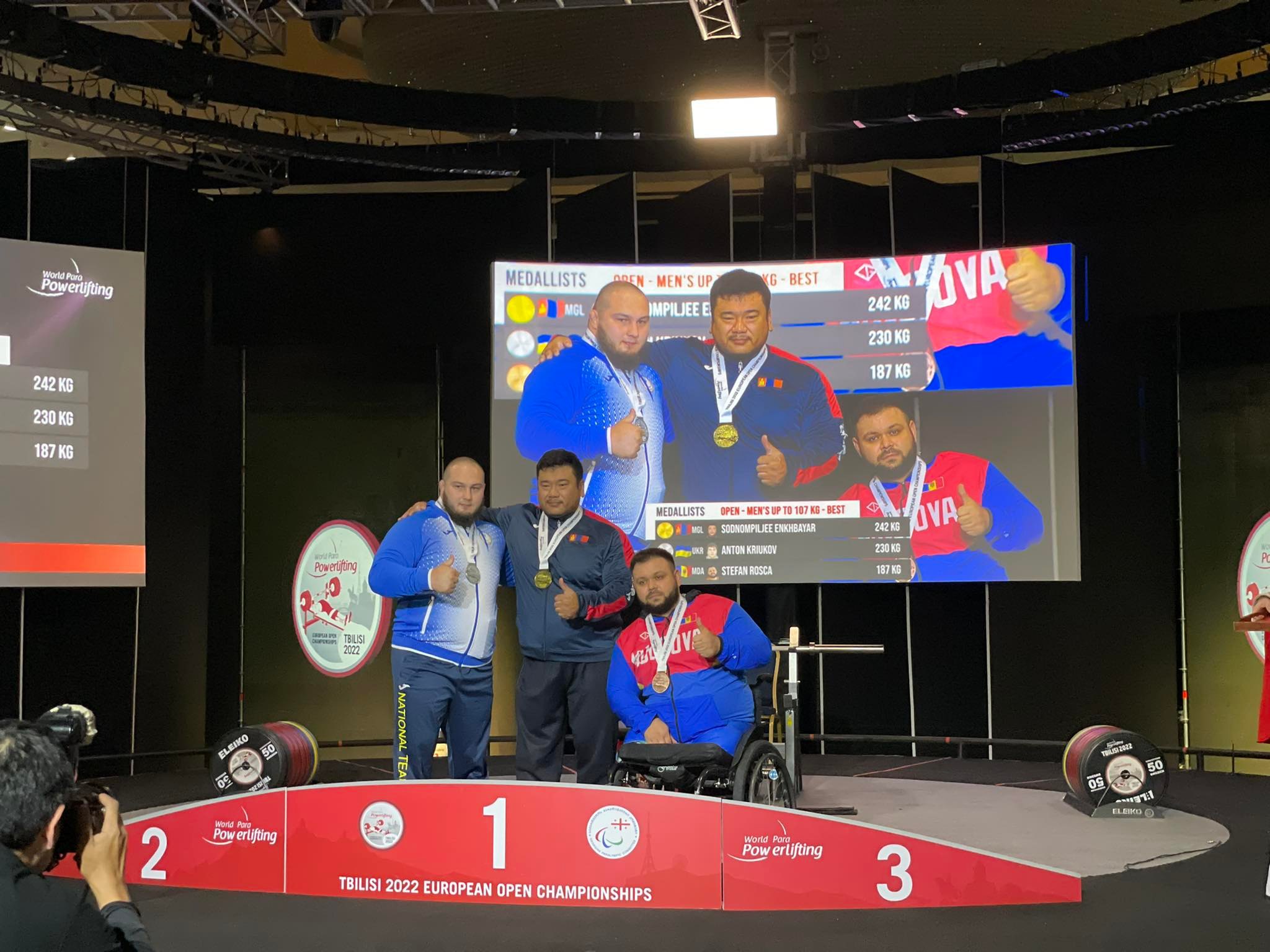 Гүрж Улсын нийслэл Тбилис хотод пара пауэрлифтингийн Европын аварга шалгаруулах тэмцээн энэ сарын 22-30-ны өдрүүднд болж байна. Тэмцээнд манай улсаас гавьяат дасгалжуулагч Д.Баттулгын удирдлага дор Үндэсний шигшээ багийн тамирчин, “Токио-2020” паралимпын наадмын аварга, дэлхийн хошой алтан медальт, Хөдөлмөрийн баатар, гавьяат тамирчин Э.Содномпилжээ өрсөлдлөө. Тэрбээр тэмцээний 107 кг-ын жинд цээжнээс 242 кг-ыг шахсанаар алтан медаль хүртэж, Тбилист төрийн дуулалаа эгшиглүүлсэн байна.