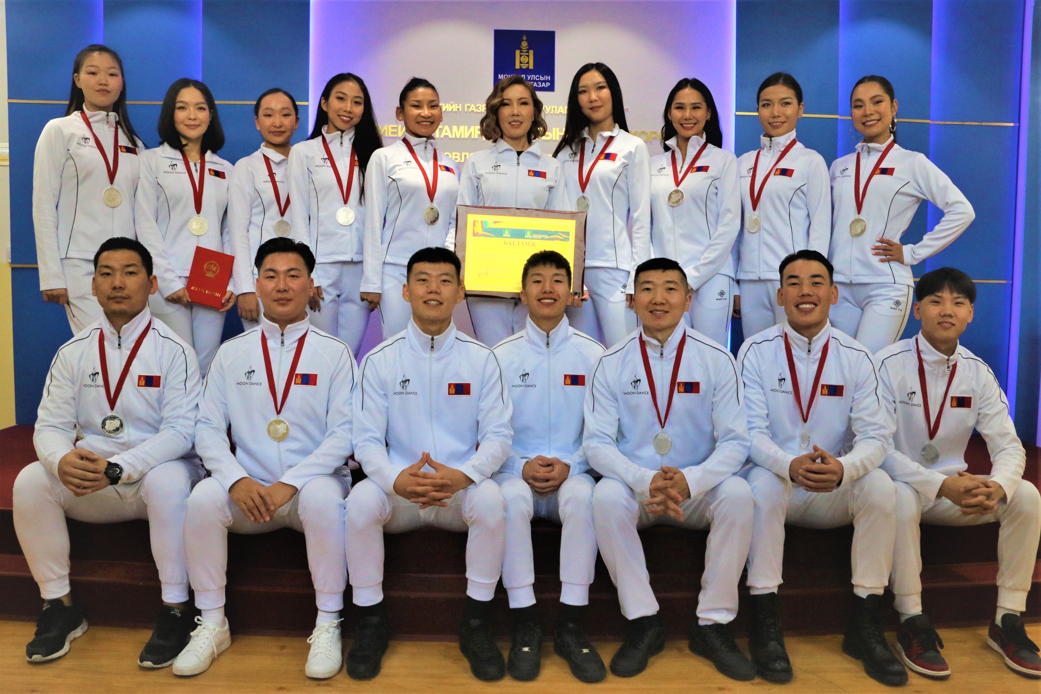 "Биеийн тамир, спортын тэргүүний ажилтан" цол тэмдгээр О.Оюунбатыг, “Жуух бичиг”, тэмдгээр Н.Мөнхбаярыг шагнав. Шагналыг Биеийн тамир, спортын улсын хорооны дарга Д.Жаргалсайхан гардууллаа. Энэ үеэр “Moon dance” хамтлагийн дасгалжуулагч О.Саранхүү “ДАШТ-ий мөнгөн медаль бол бидний олон жилийн зорилго, мөрөөдөл байсан. Монголын залуус ямар их авьяастай, монголын соёл, урлаг болон ондоошлыг бүжгийнхээ дэглэлтээр дэлхий нийтэд харуулахыг хичээсэн. Энэ өндөр амжилтад хүрэхэд бүжигчдийн маань гэр бүл, төр засгийн дэмжлэг туслалцаа их байлаа” гэдгийг онцлон хэлэв.